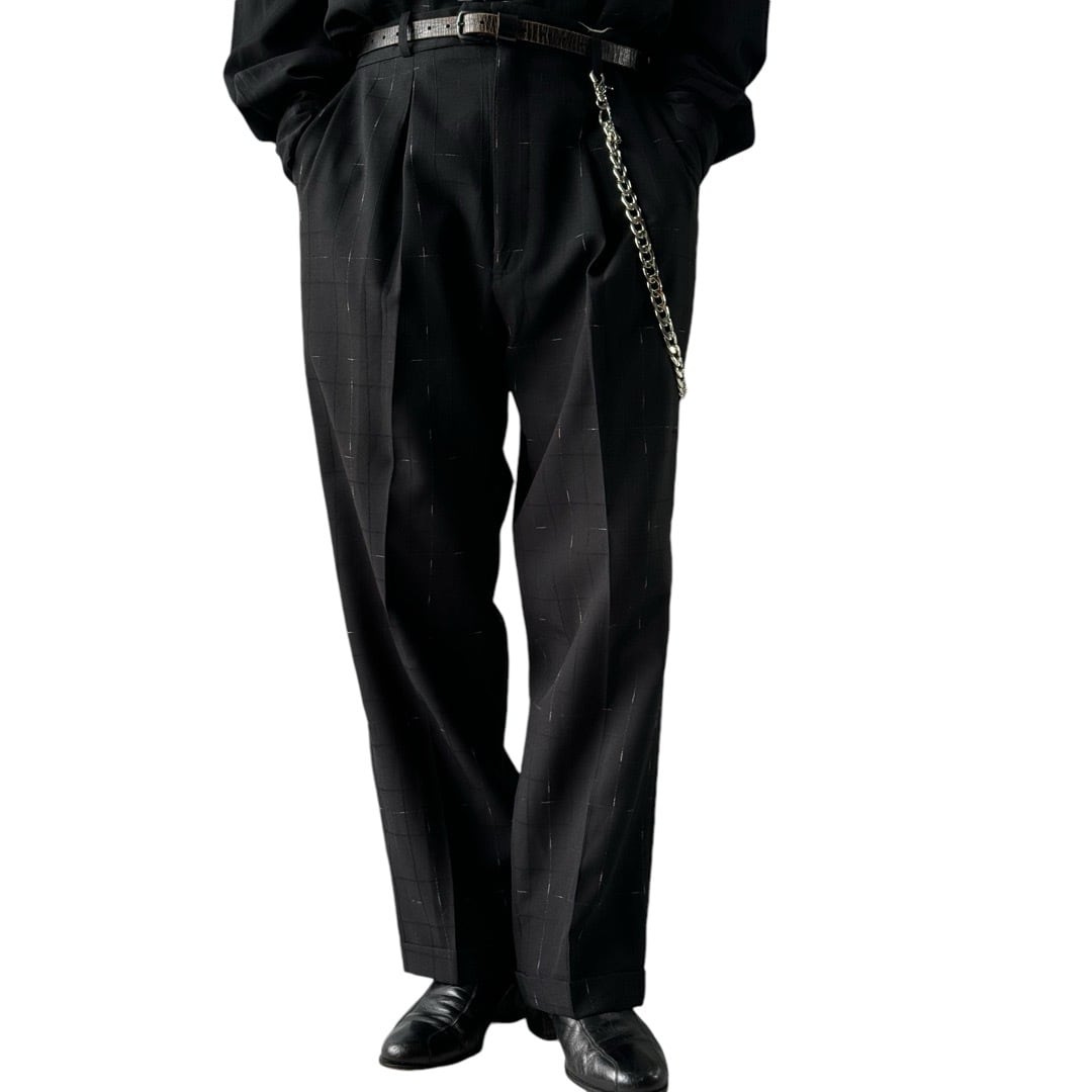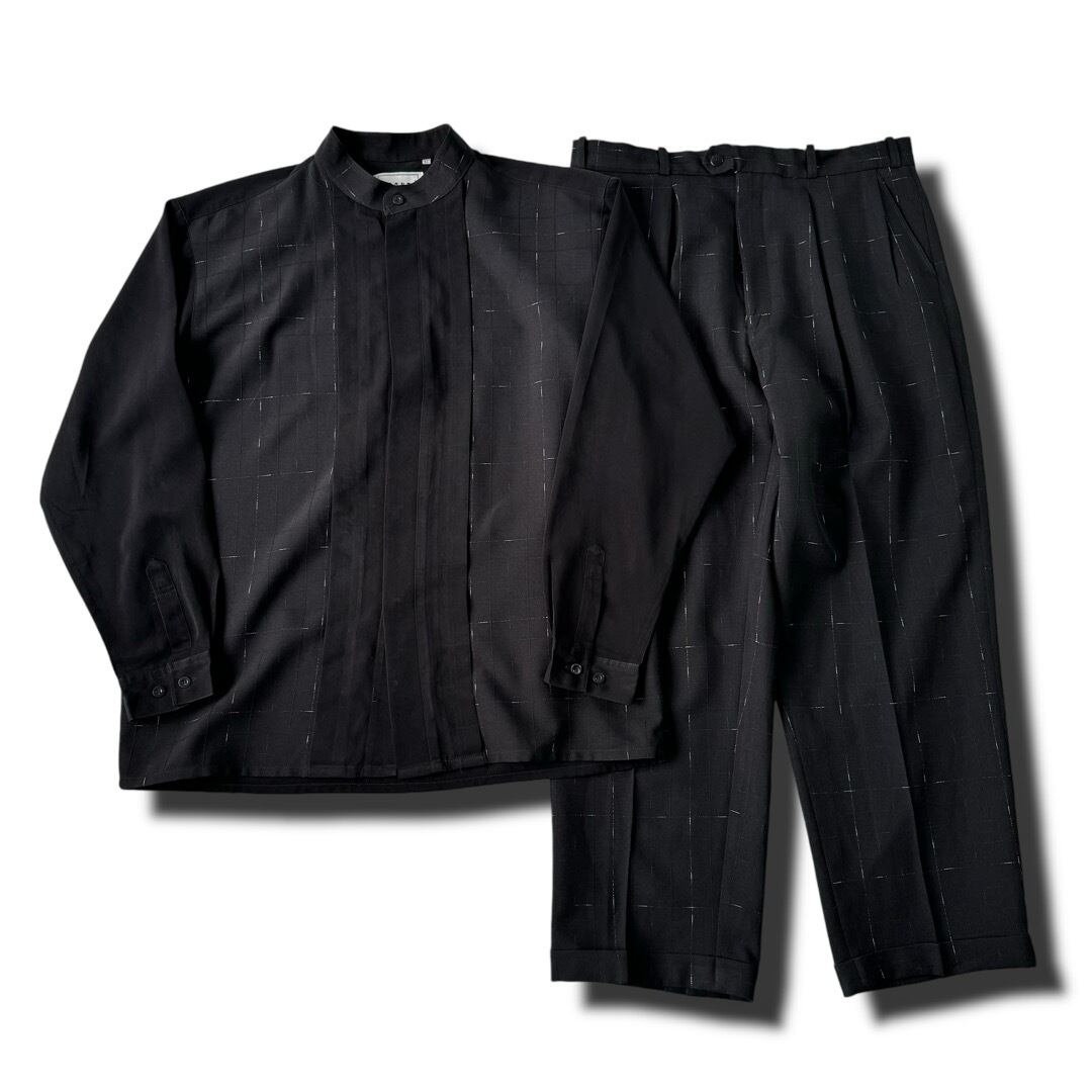 掠れたチェックパターンのデザインバンドカラーシャツセットアップ‼️