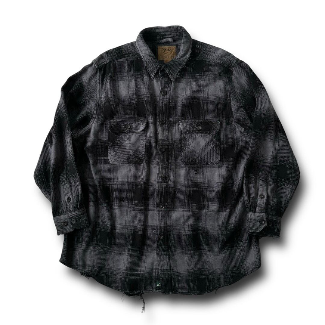 ♾️OUTDOORLIFE♾️ Design crushed ombré check shirt 〜heavy nel〜 size XXL