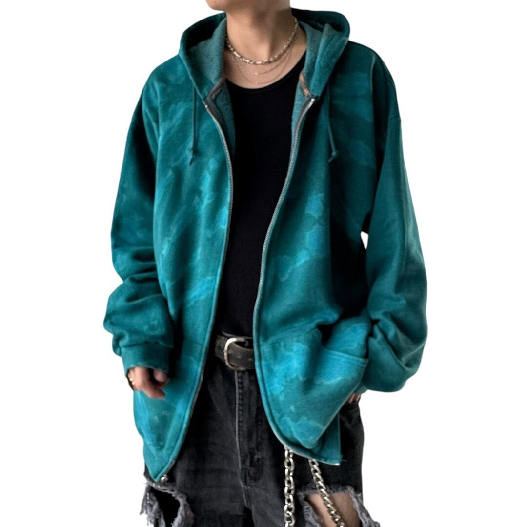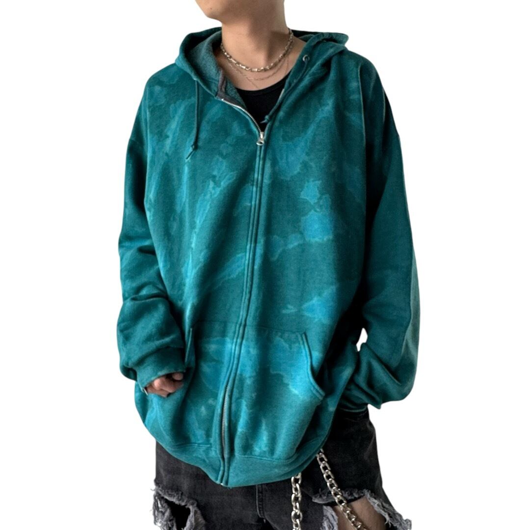 ♾design used♾ "FRUIT OF THE LOOM" tie dye design over sized zip up hoodie size2XL