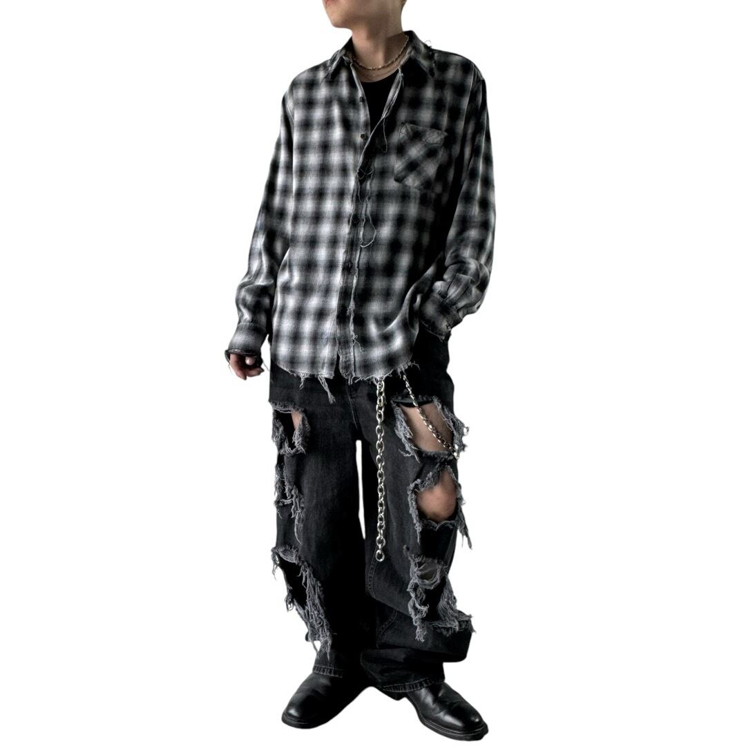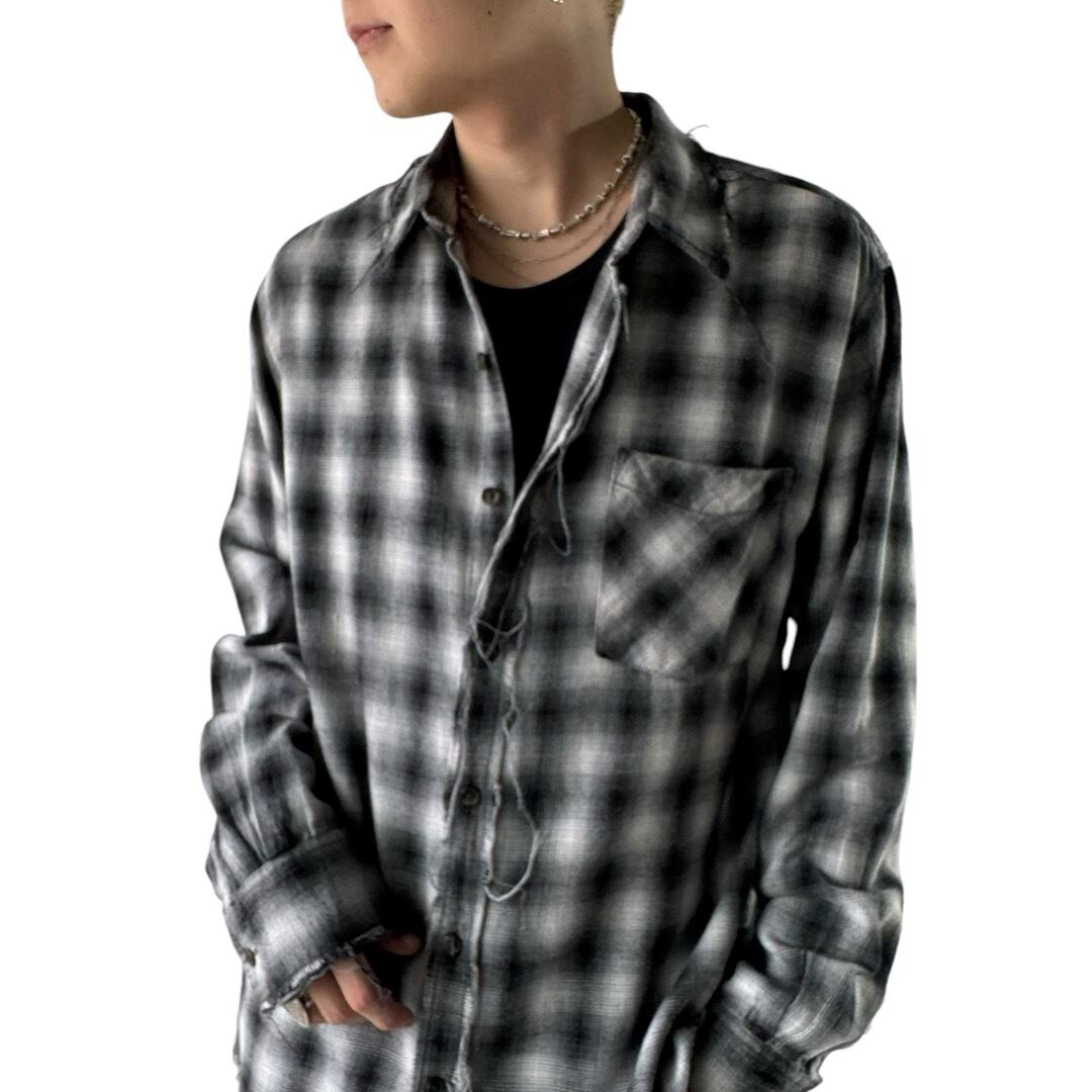 ️ダメージ加工が加わった無二なデザインのオンブレチェックシャツ‼️