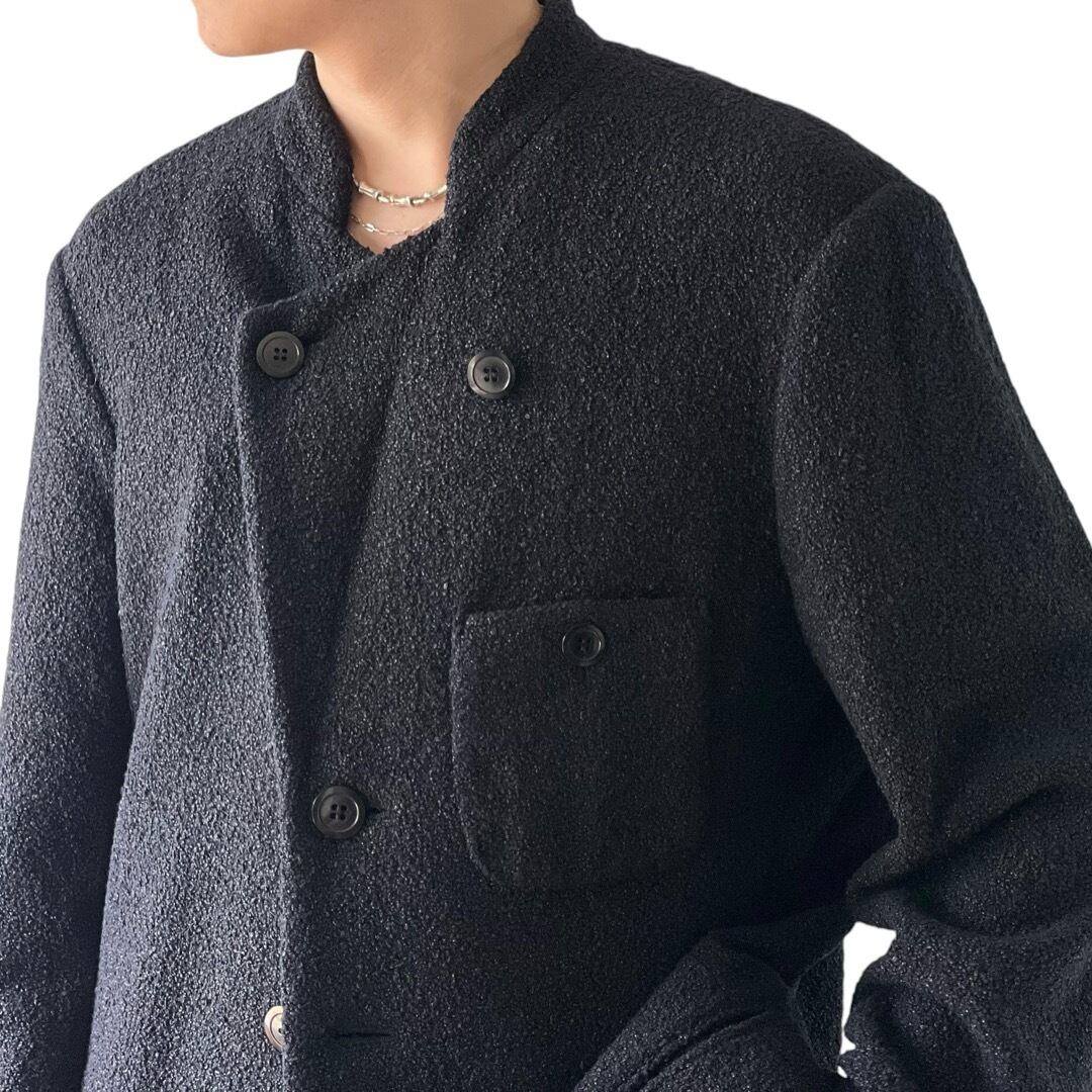 大振りなボタンがアクセントに、変わり種な質感も雰囲気あり光の当たり具合でキラキラと光って見えるような絶妙なニュアンスも素敵◎