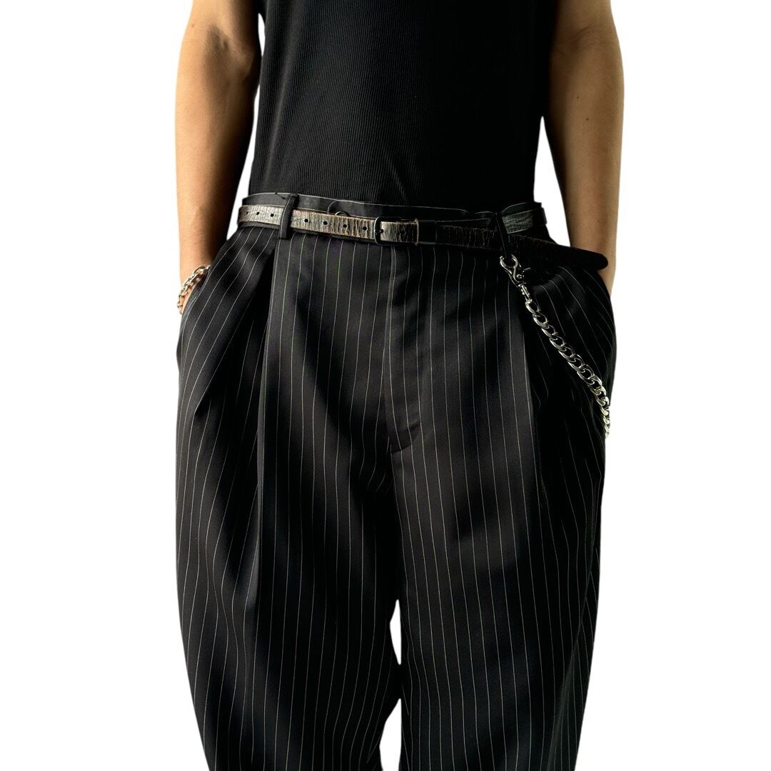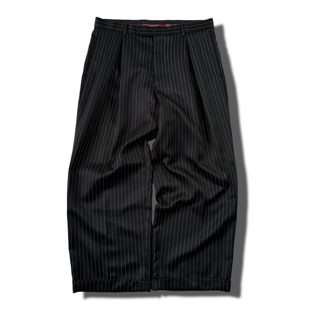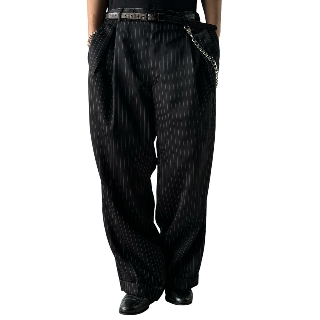 ブラックにホワイトのピンストライプが存在感あるワイドスラックス✨