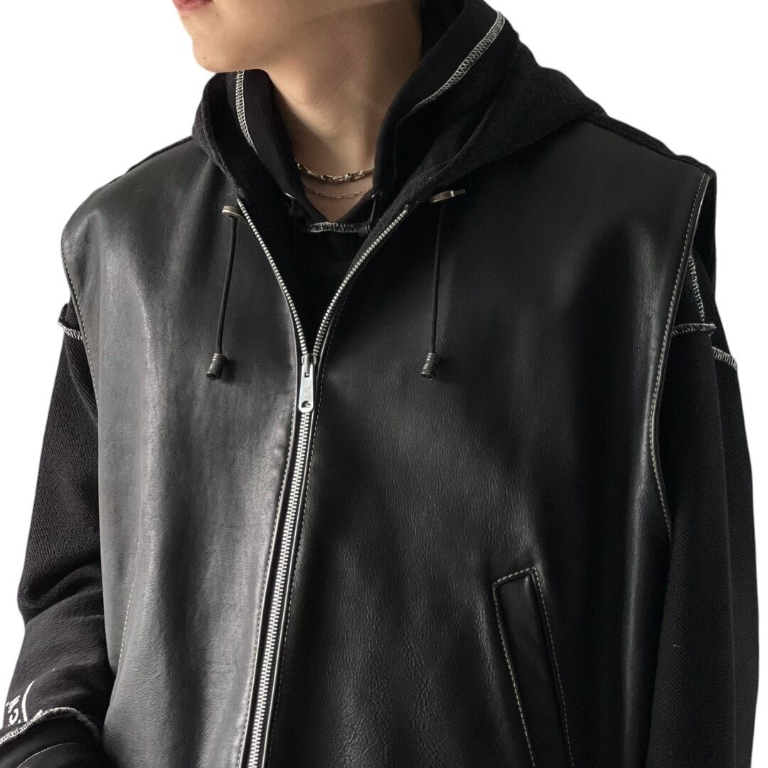 オールレザーのベストだと印象が強すぎるって人にもお勧めできる程よいモードさとカジュアル感◎
