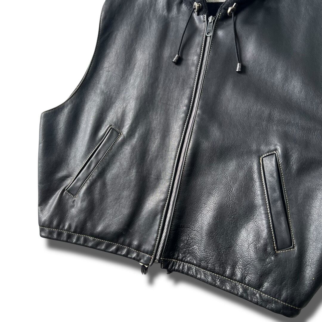 【Rugby NORTH AMERICA】Leather-trimmed wool hooded vest