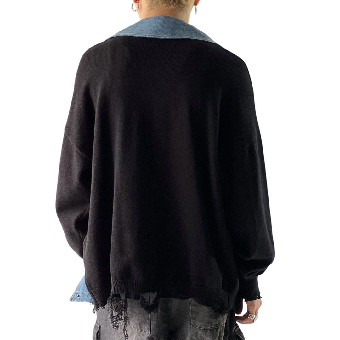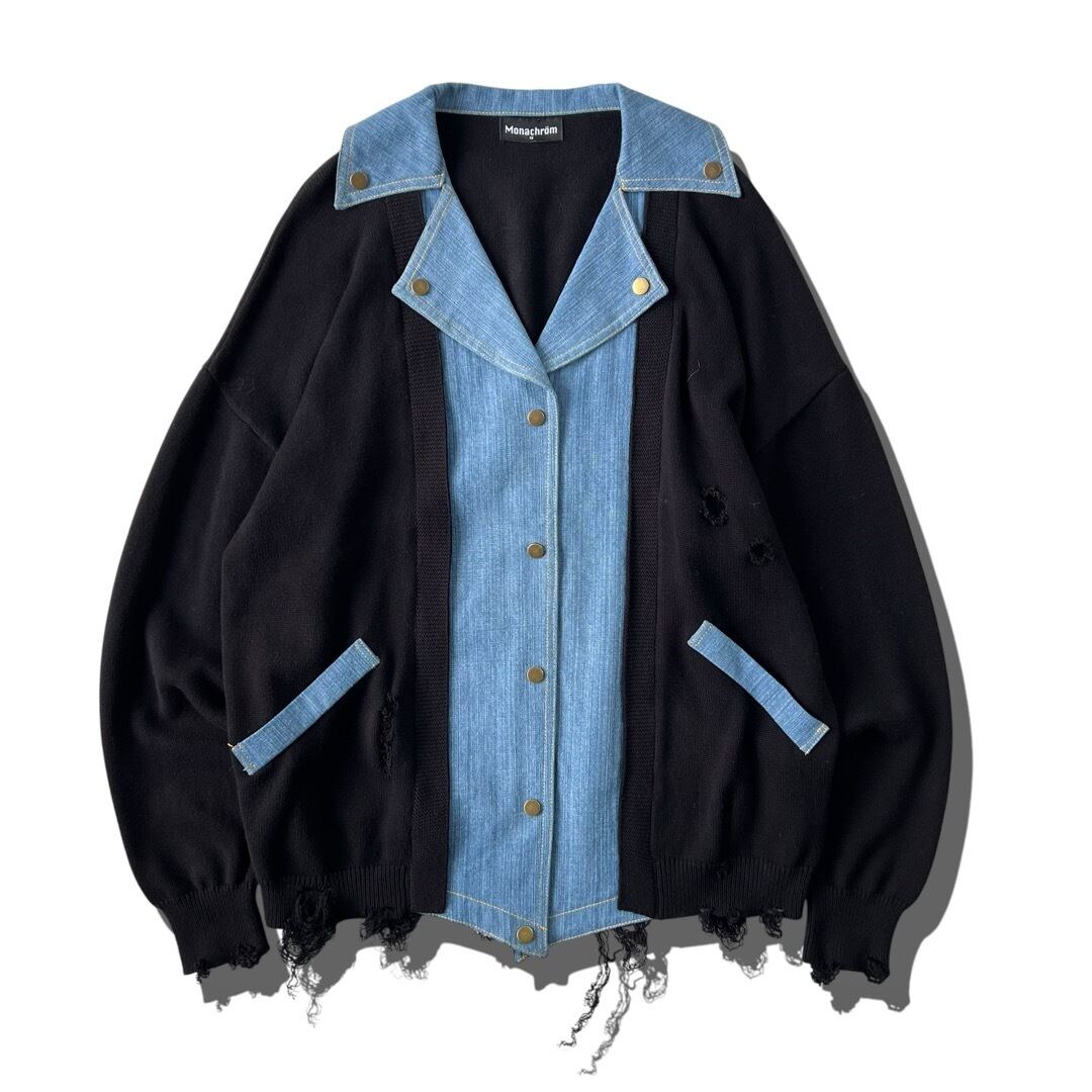 デニムジャケットとカーディガンがレイヤードされたように見えるドッキングデザイン☝️✨