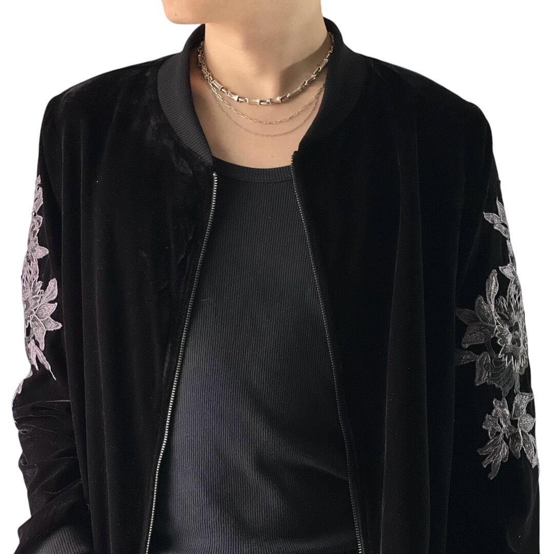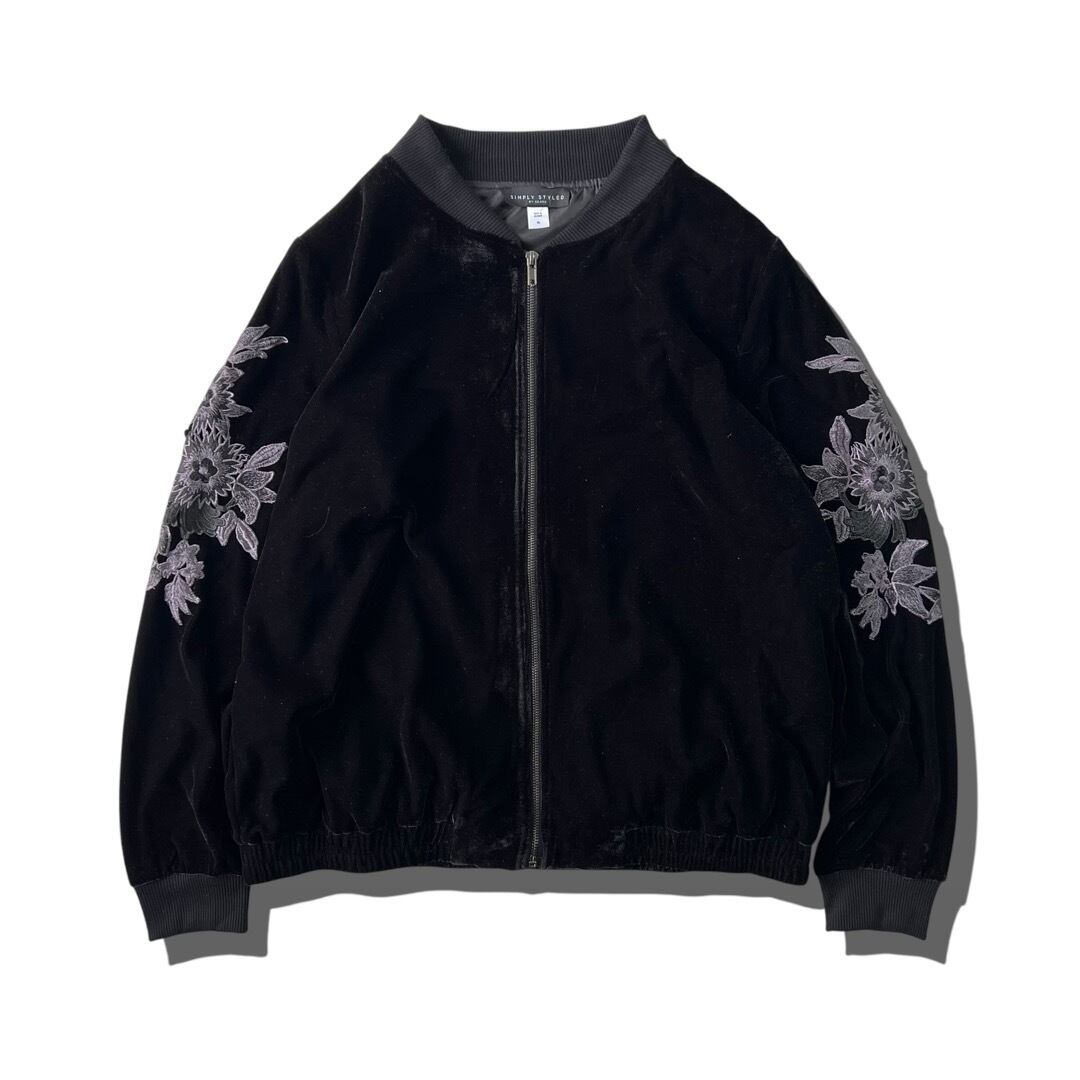 【SIMPLY STYLED】Floral Embroidery on sleeves Velvet Blouson
