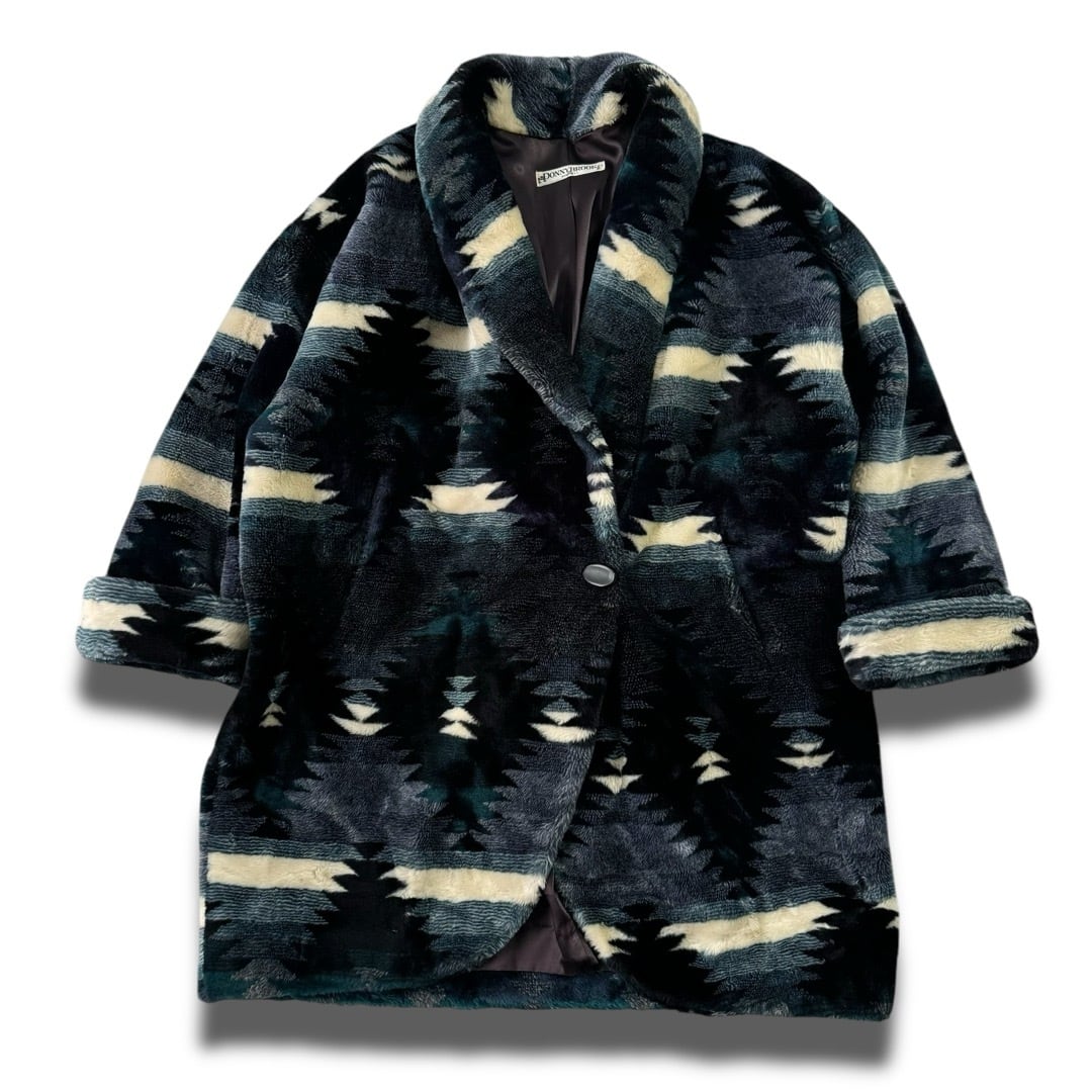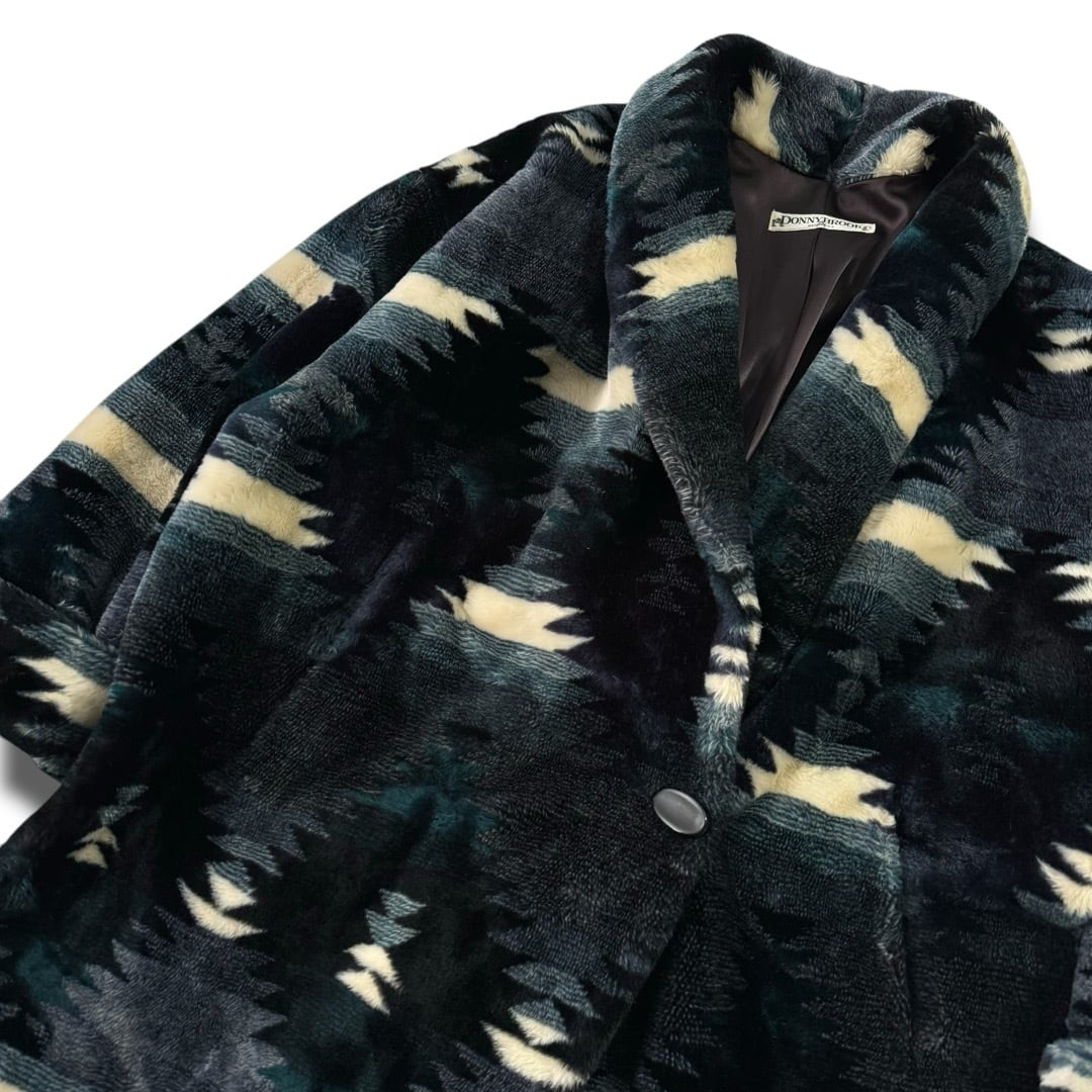 ♾80’s DONNYBROOK♾ native patterned over sized faux fur gown coat MADE IN U.S.A. size3X