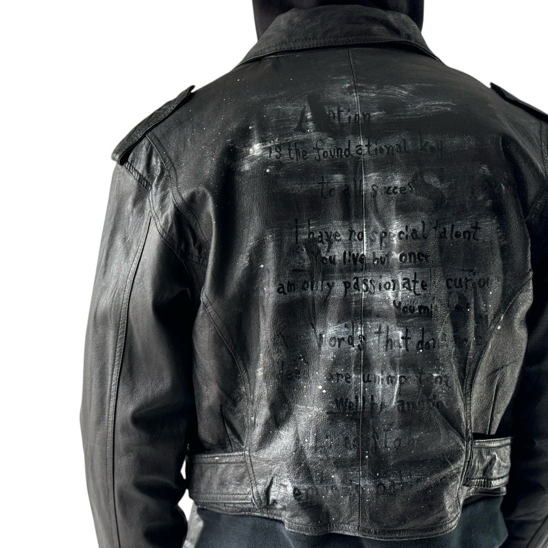 ハンドペイントが施された無二でアーティスティックなデザインが目を引くダブルライダースレザージャケット‼️