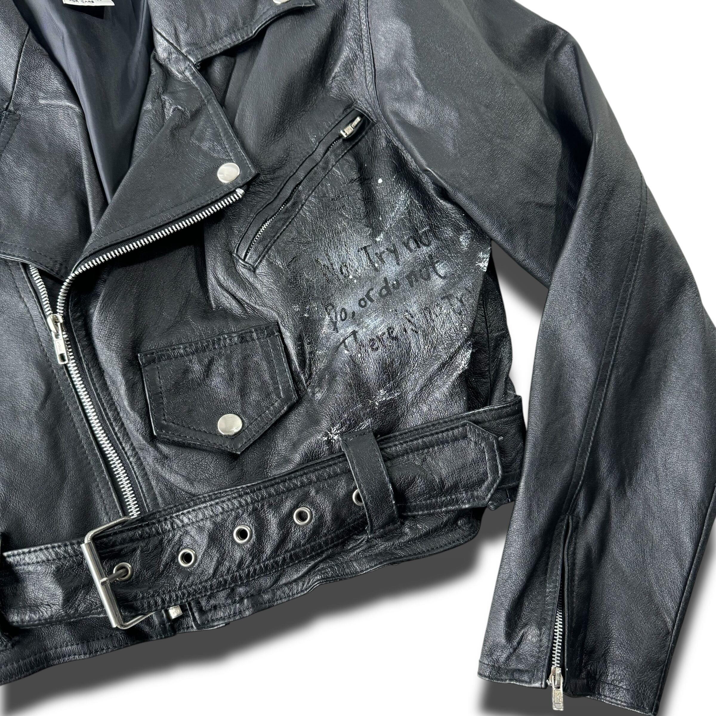 ♾STAR CODY♾ hand painted short length design double riders leather jacket sizeM