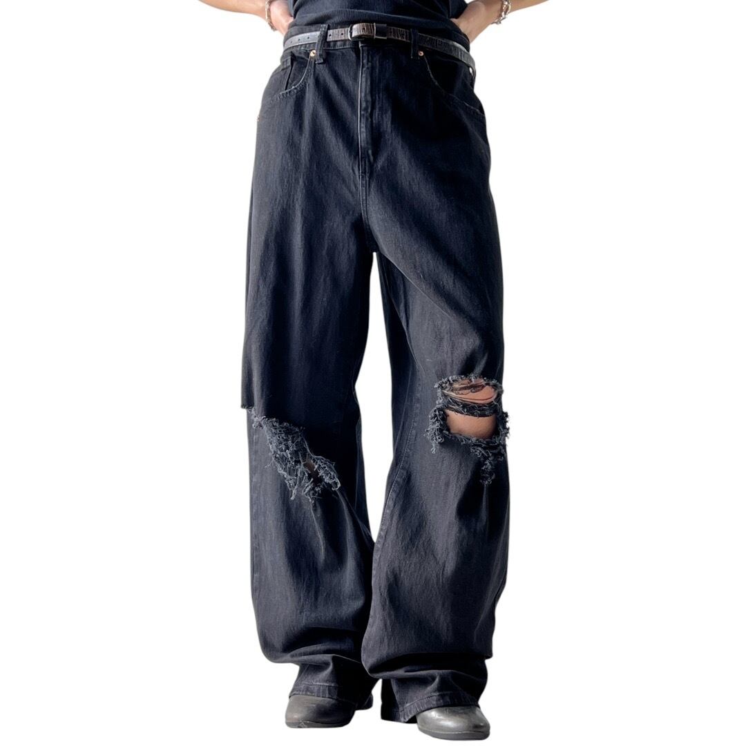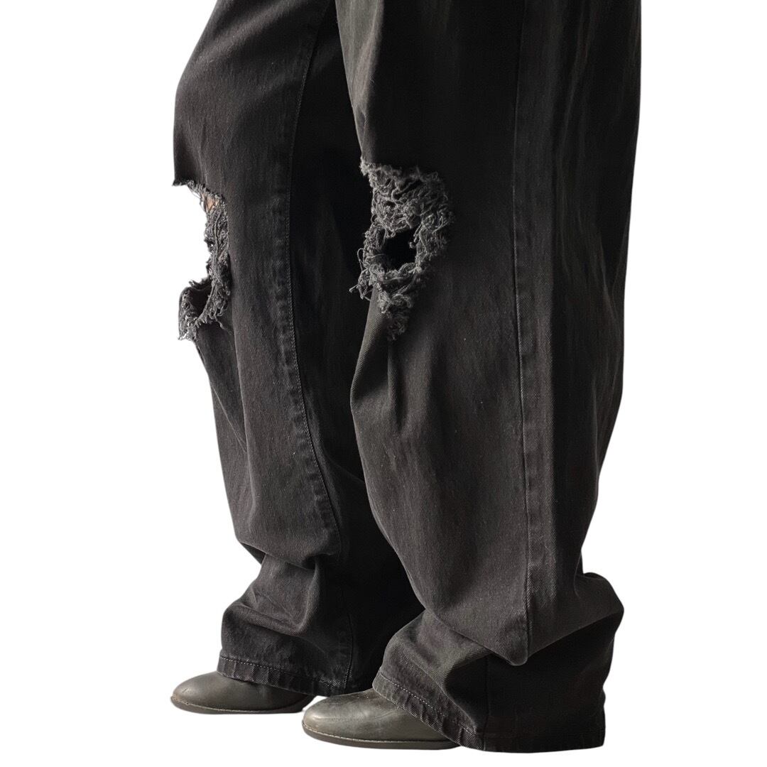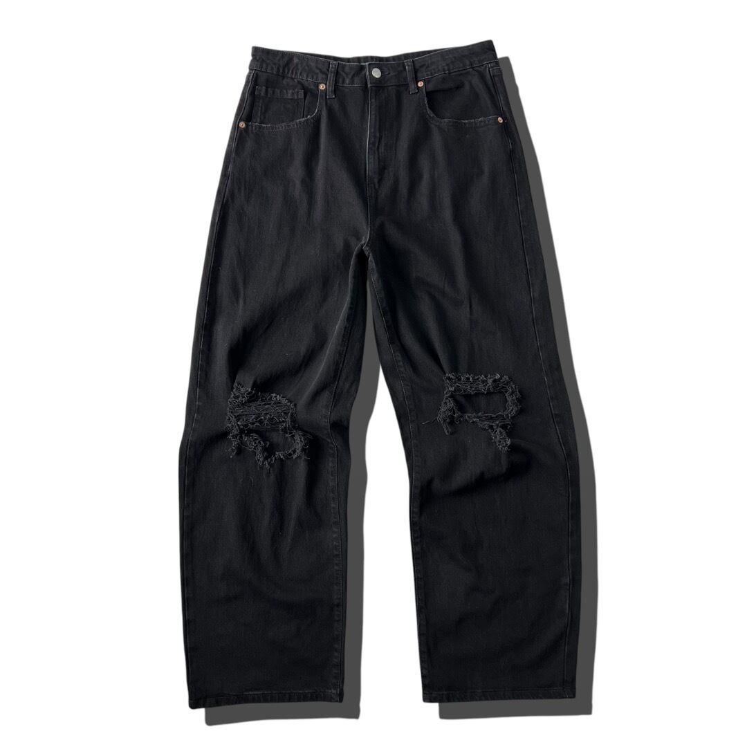クラッシュ加工を施したデザインブラックデニムパンツ❗️