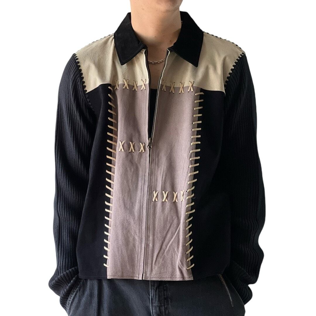ニットボディがメインで、フロントのスウェードはブラック、グレー、ナチュラルのモノトーン切り替えパネル!!