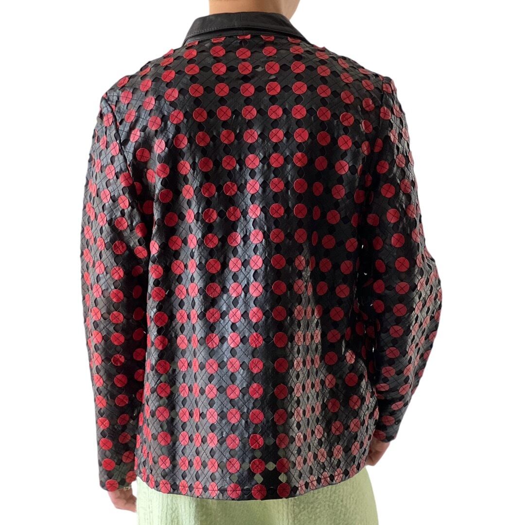 重厚感のある黒と赤のカットワークされてリアルレザーにメッシュ生地が張られて見え方に奥行きのある見栄えとクオリティ最高な1着❗️