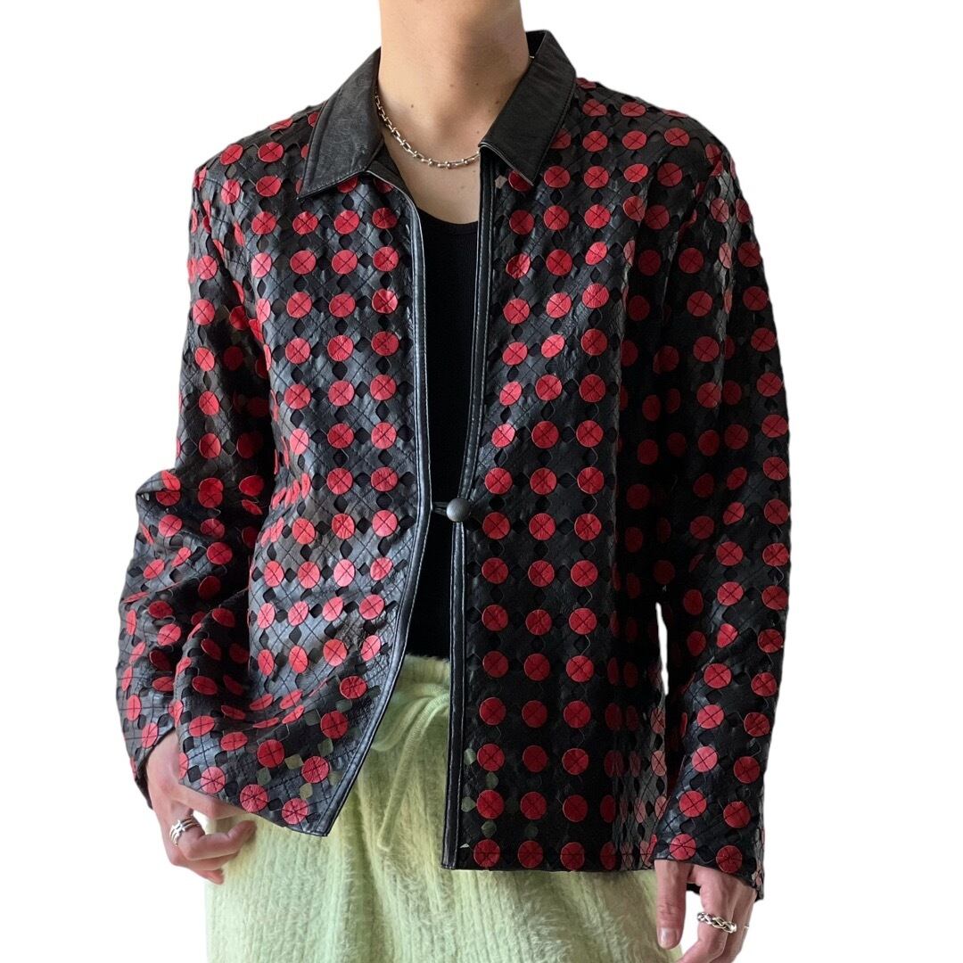 【Design used】Cutwork pattern Real Leather zip Jacket