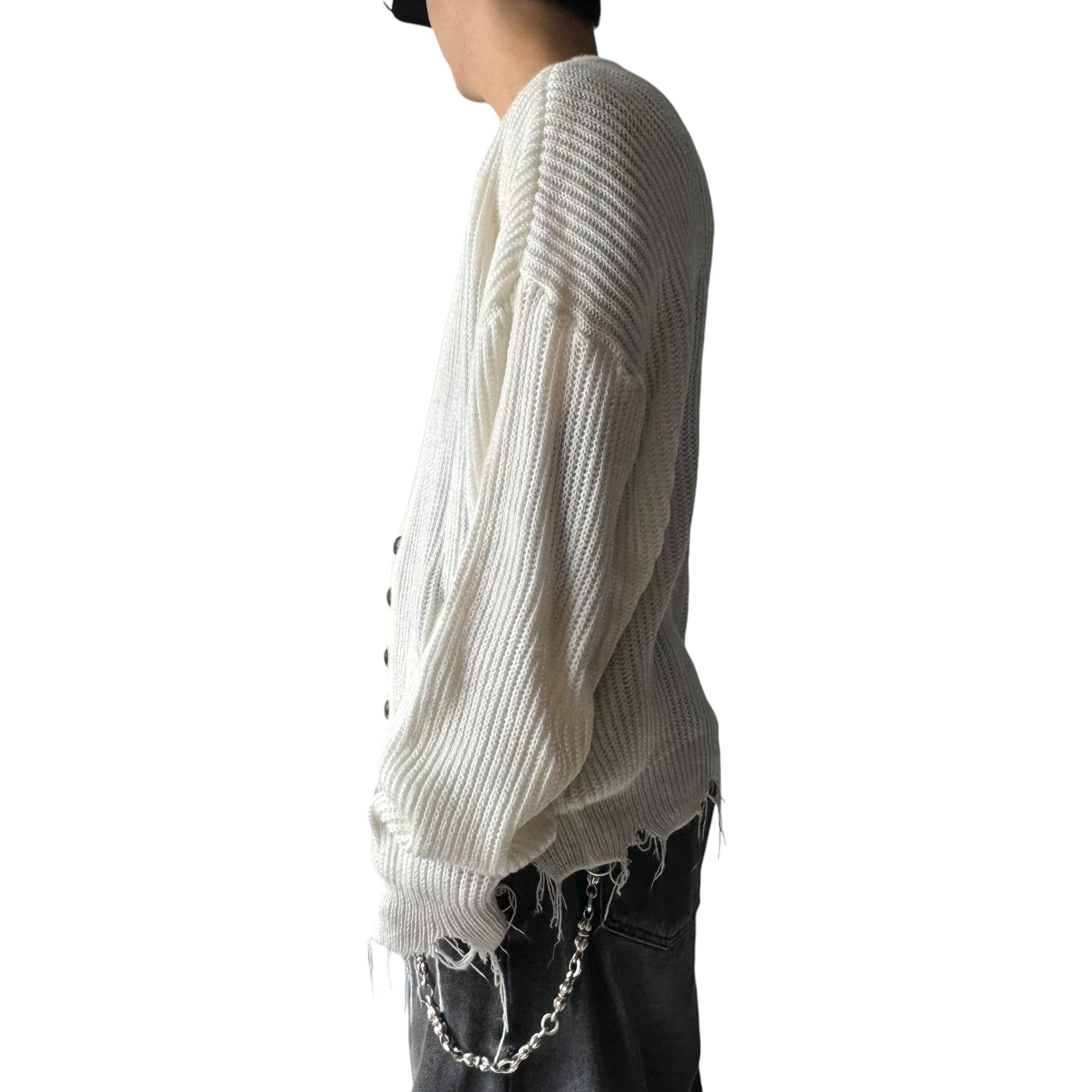 リブ部分にダメージ加工を施した程よくパンチの効いたデザインが最高なクラッシュカーディガン‼️