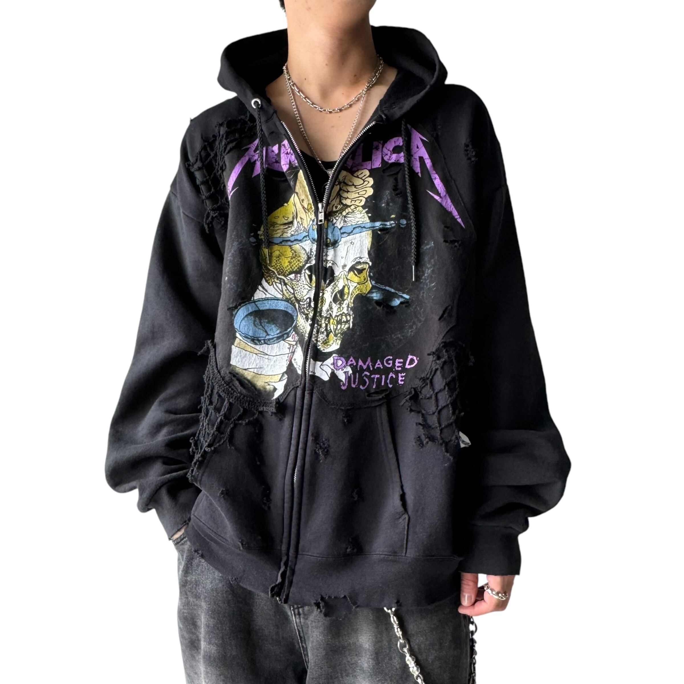 METALLICAのインパクト抜群なグラフィックのパッチカスタムにダメージ加工を施したジップフーディー‼️