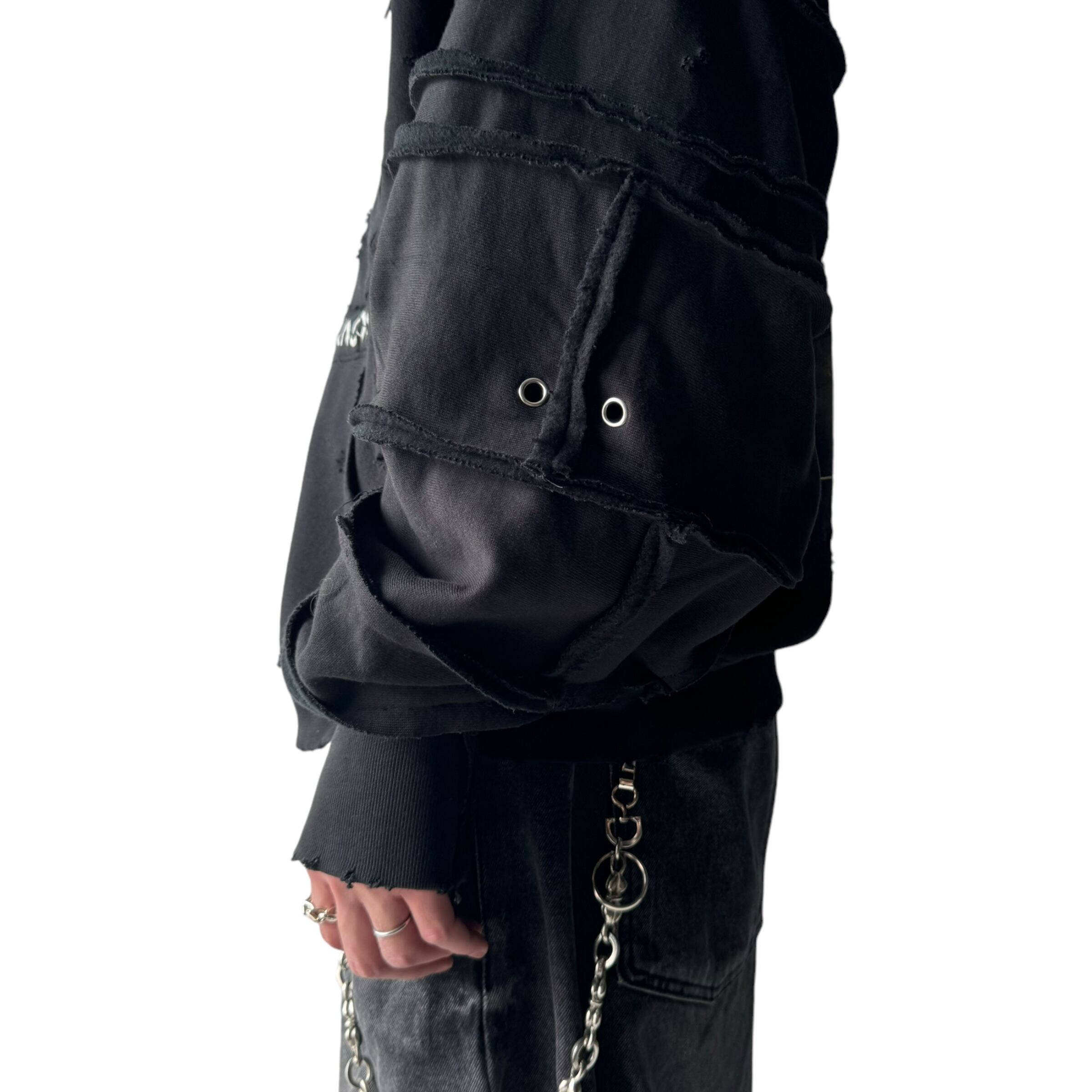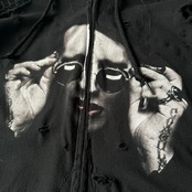 マンソンのダークでインパクト抜群なグラフィックのパッチカスタムにダメージ加工を施したジップフーディー‼️