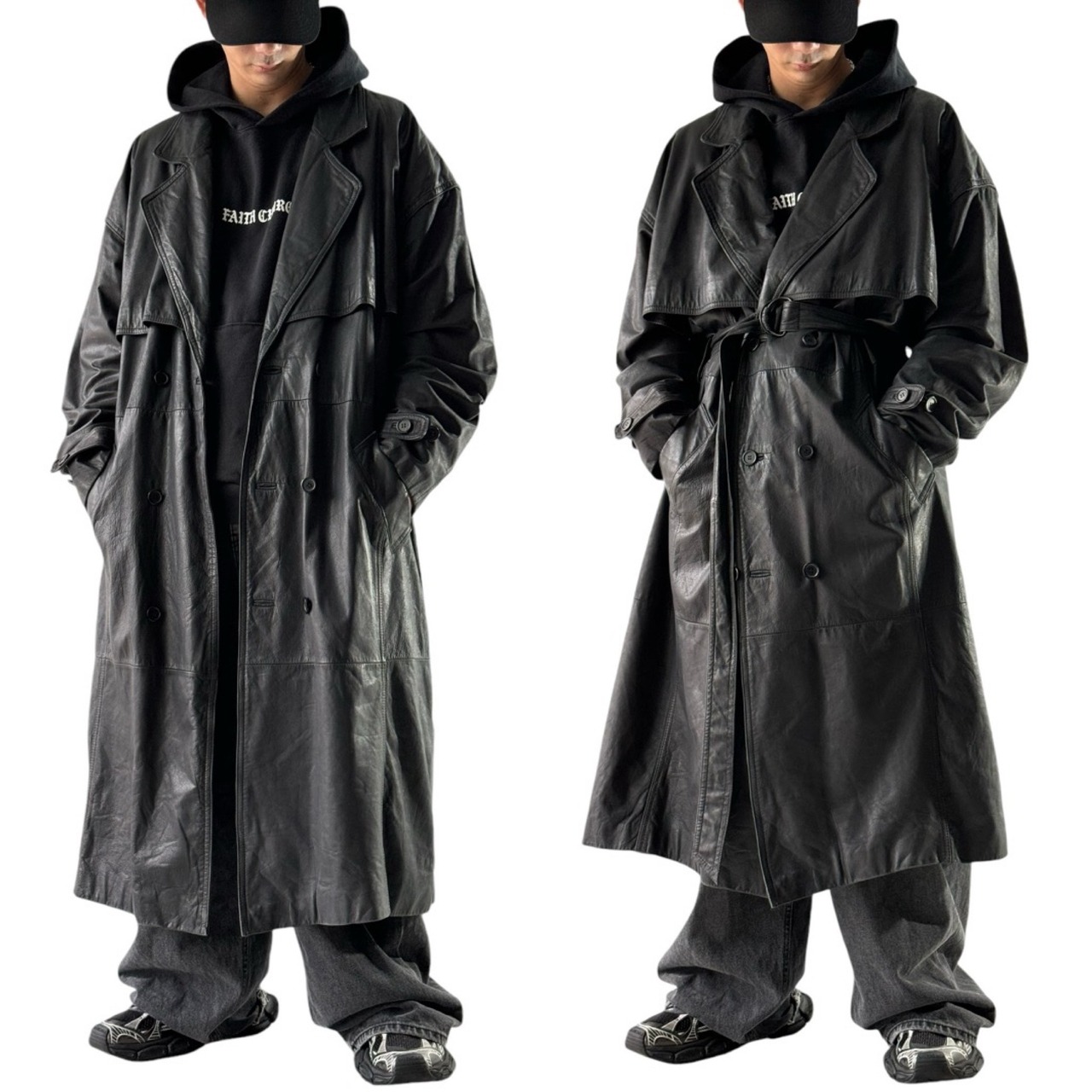 ♾️LUCIANO♾️ double breasted leather trench coat size XL