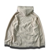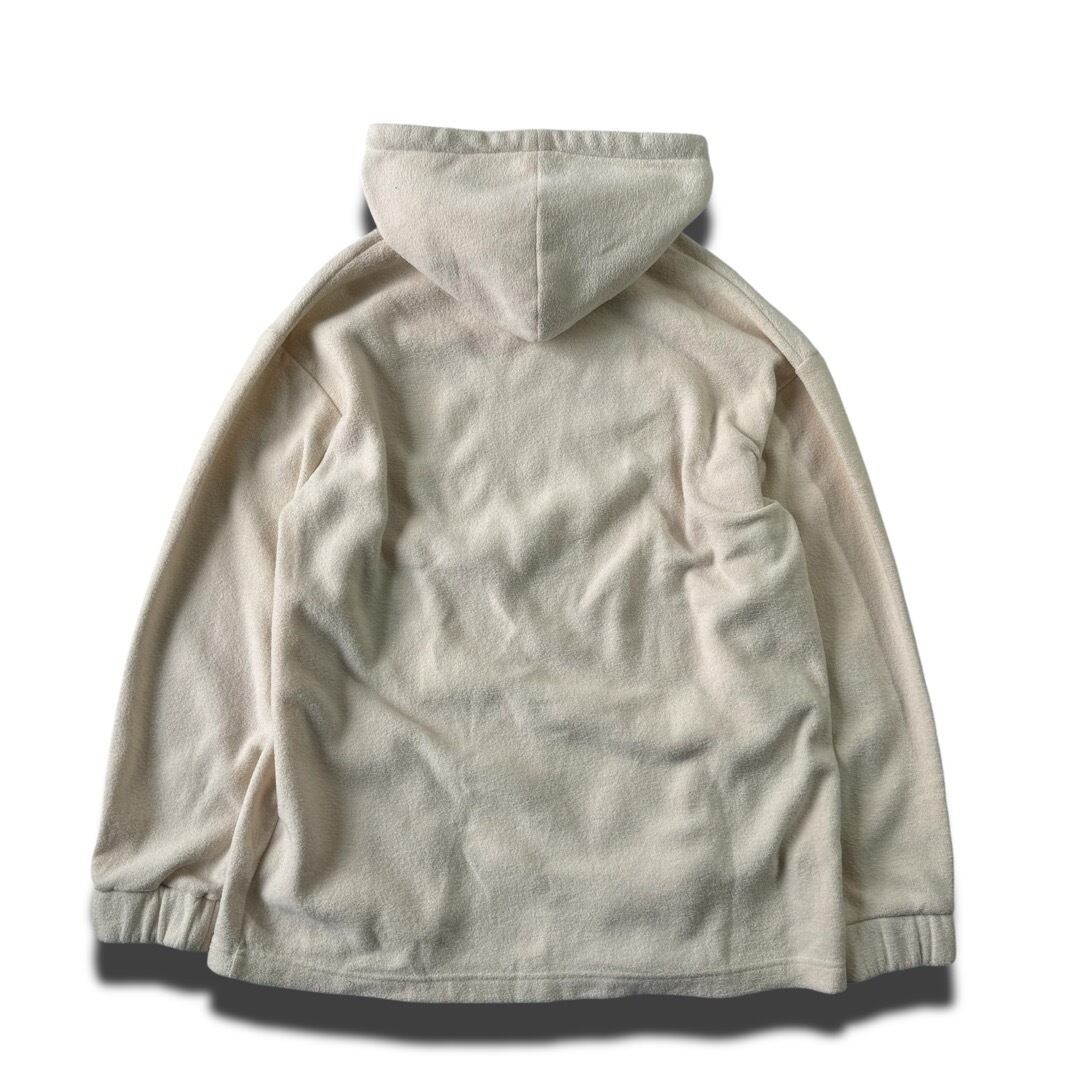 クリーミーホワイトのパイル地に刺繍やドローコードにはブラウンカラーを使用.