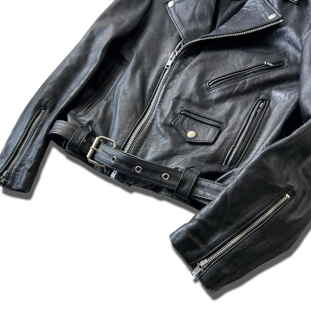 この武骨な雰囲気に程よく柔らかい本革のダブルライダースジャケット‼️ シルバージップにベルトもついた完品の良いサイズ感☺️❤️