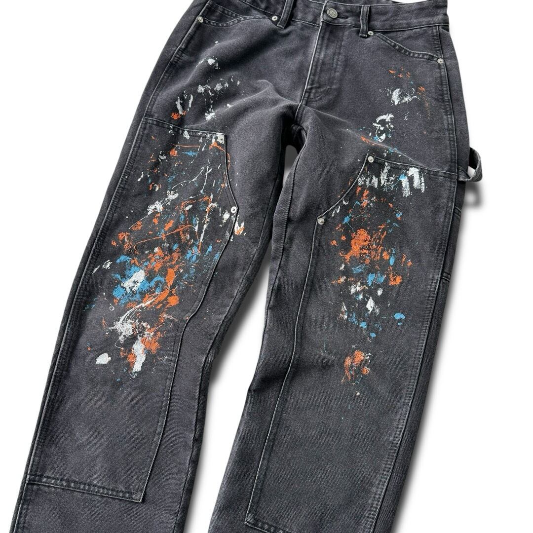 design painted double knee painter pants