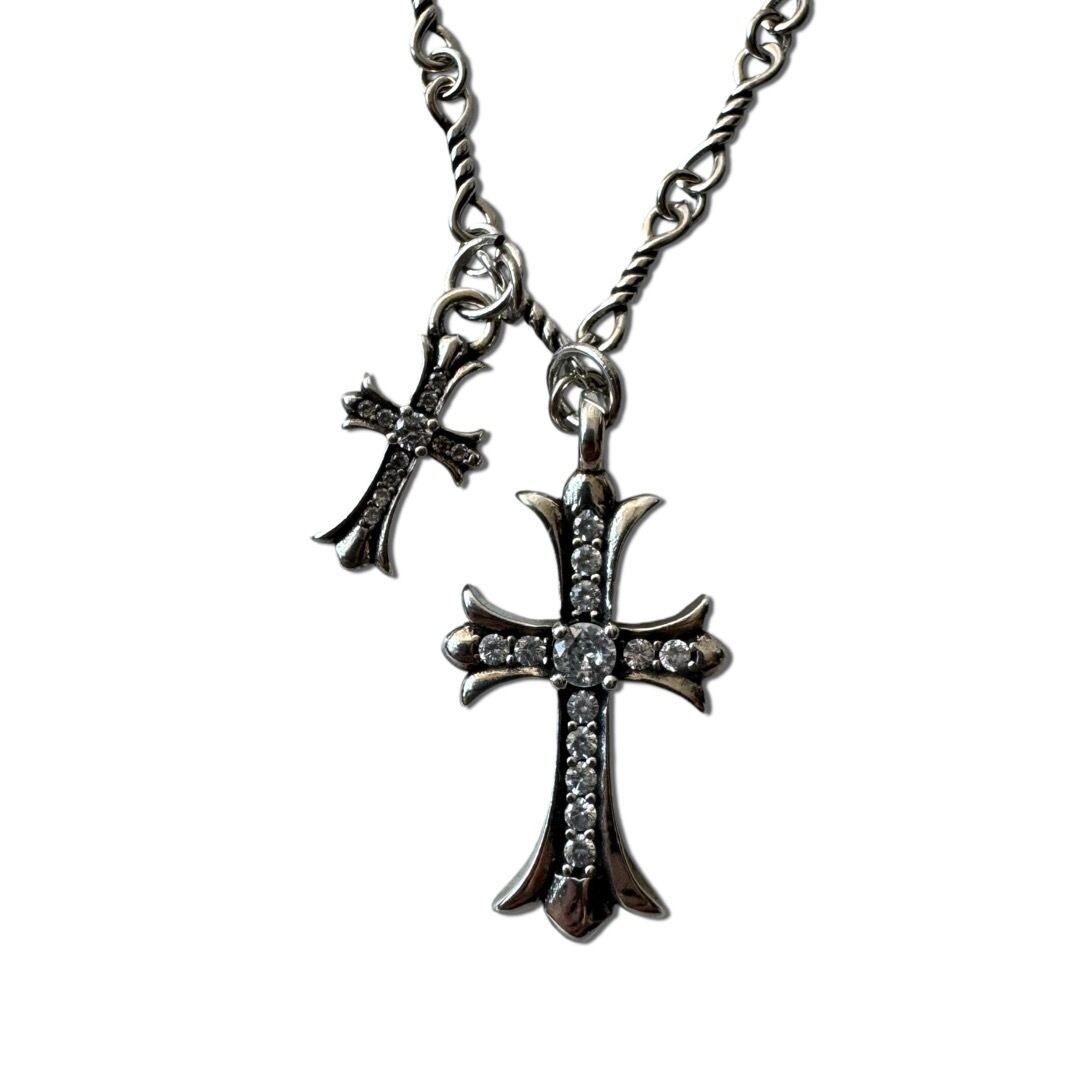 ジルコニアをセットした大きさの異なる2つのクロスチャームがクールなダブルトップデザインネックレス✨️