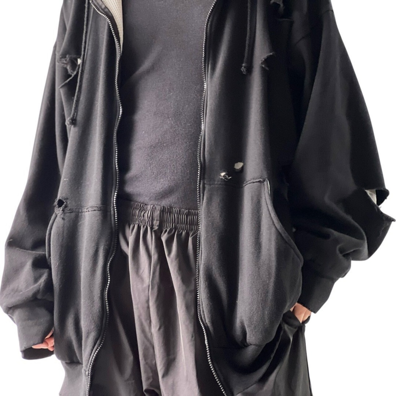 【CLASSIC BY TEN WEST】 "Distressed pattern" Thermal lining design Zipup Hoodie