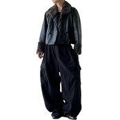 Fur swiching Leather short jacket