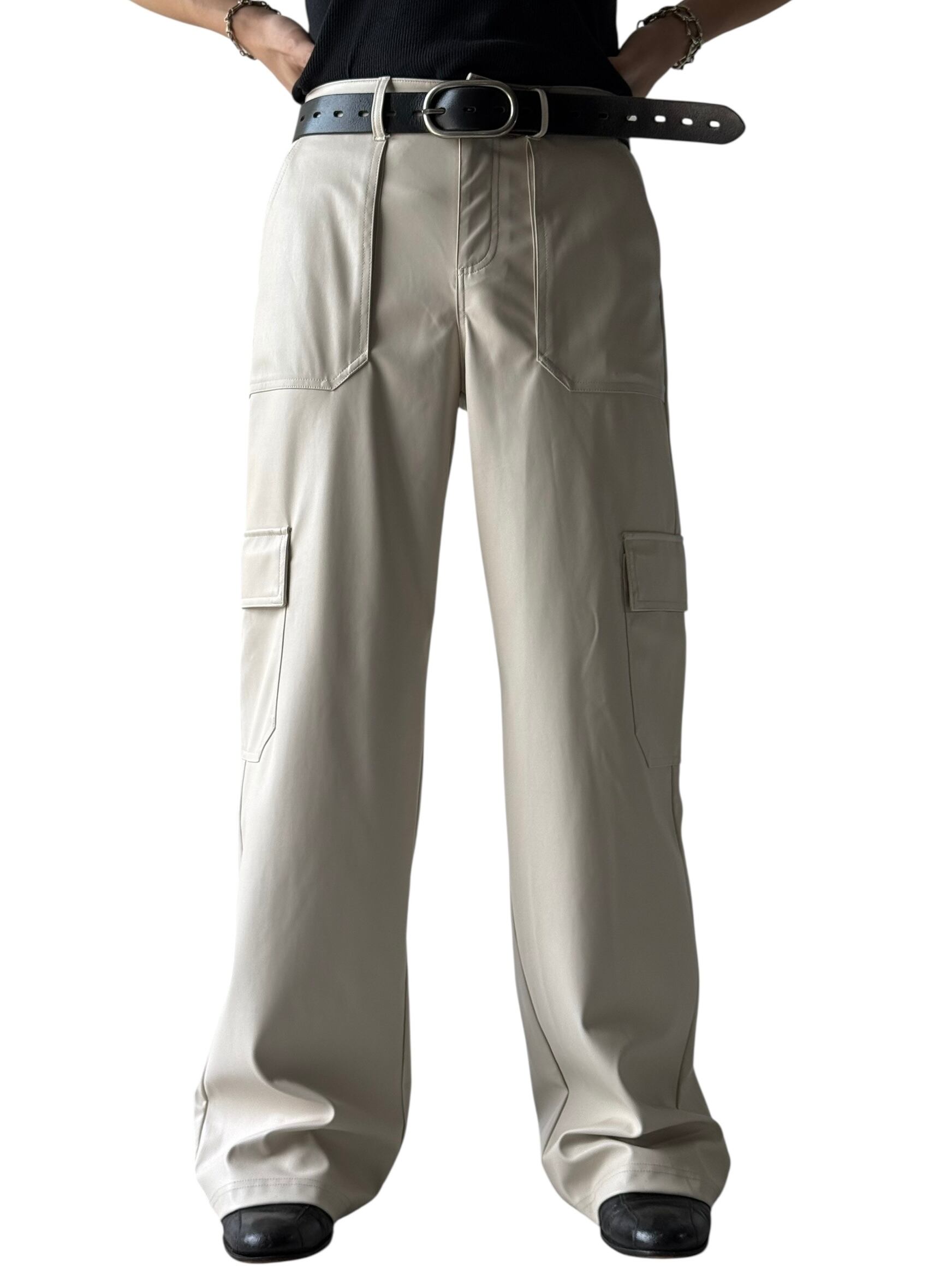 PVCレザーの見た目はかなりレザーな質感でカーゴパンツディテール❗️