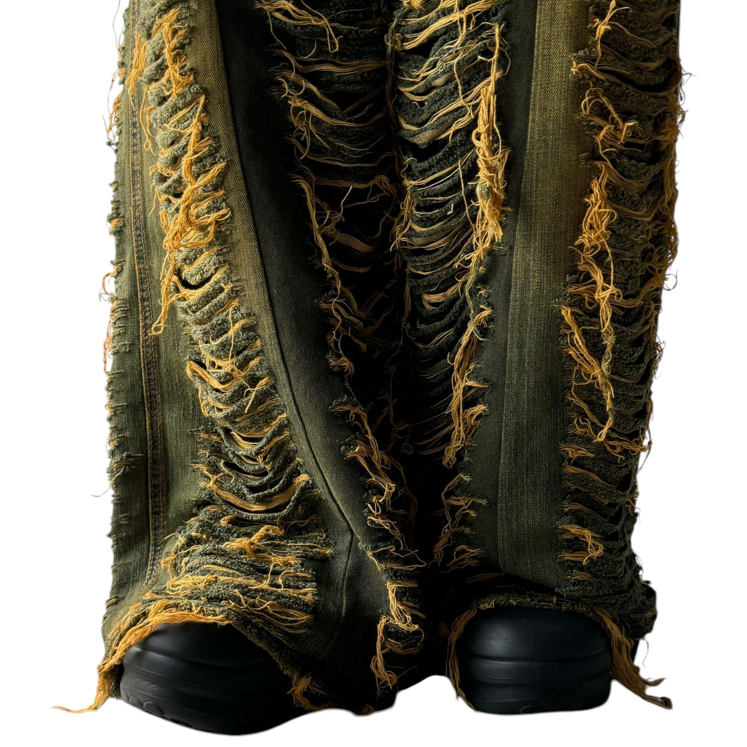 数本のデニムを足して作られているので通常ではあり得ない袴のように広がるメガワイドシルエット❗️