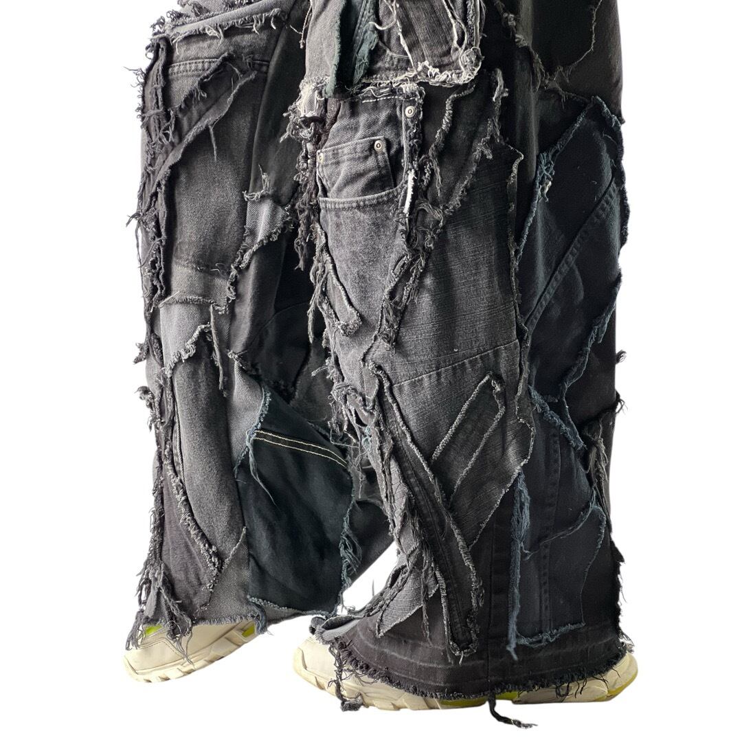 【REMAKE DESIGN USED】"Reconstruction custom" Mega Wide black denim pants