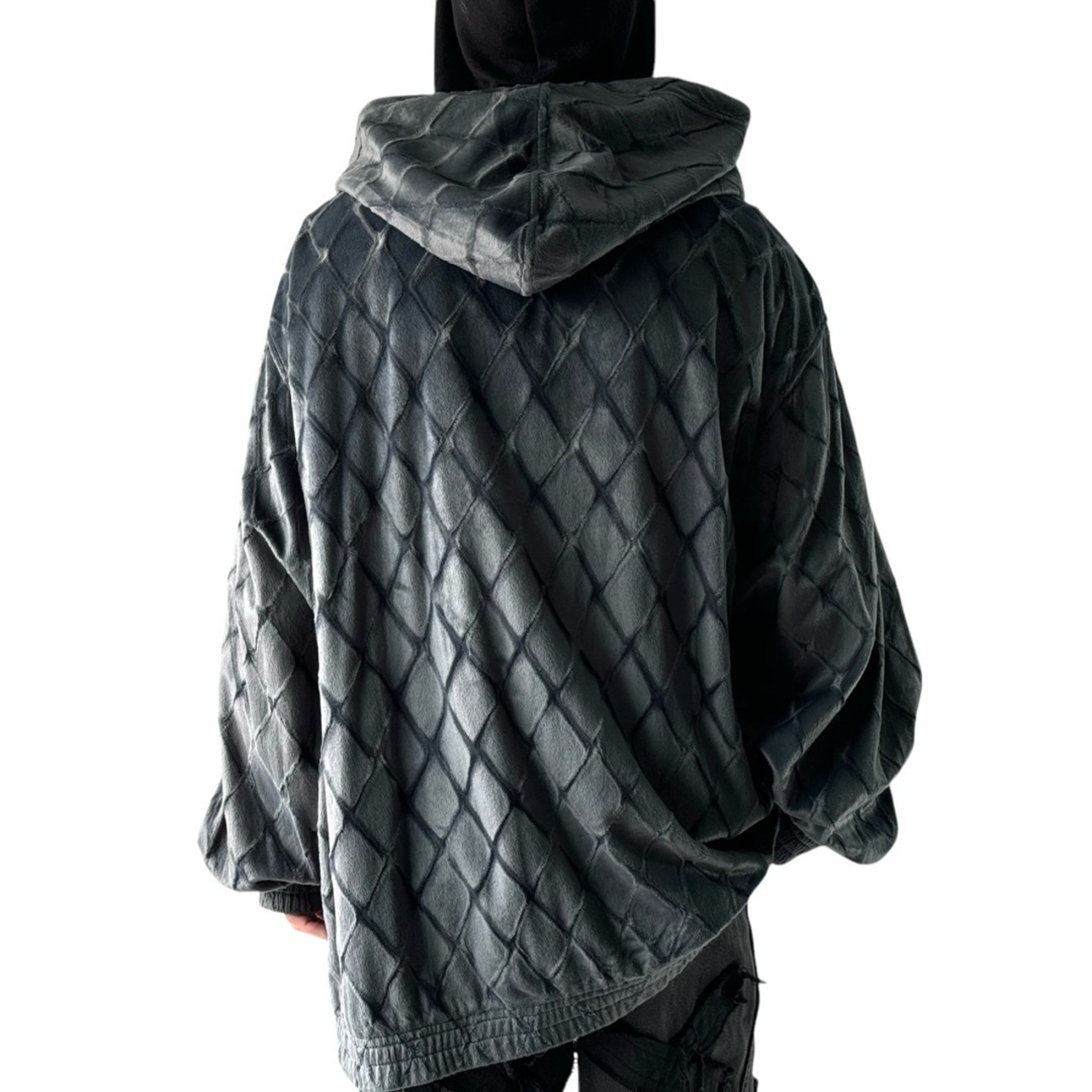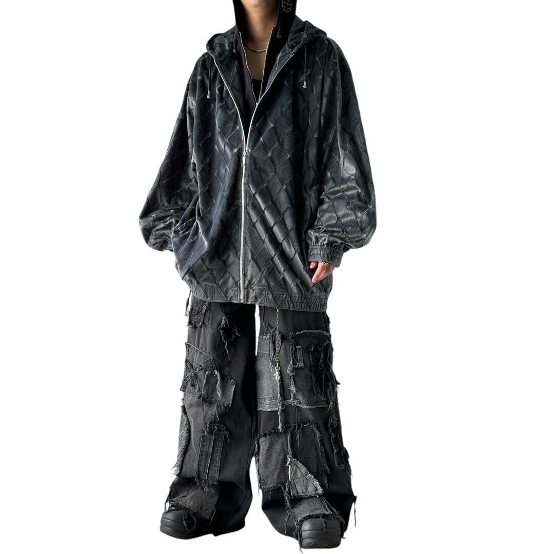 ♾JCT♾ design patterned velours zip up hoodie sizeXXXL