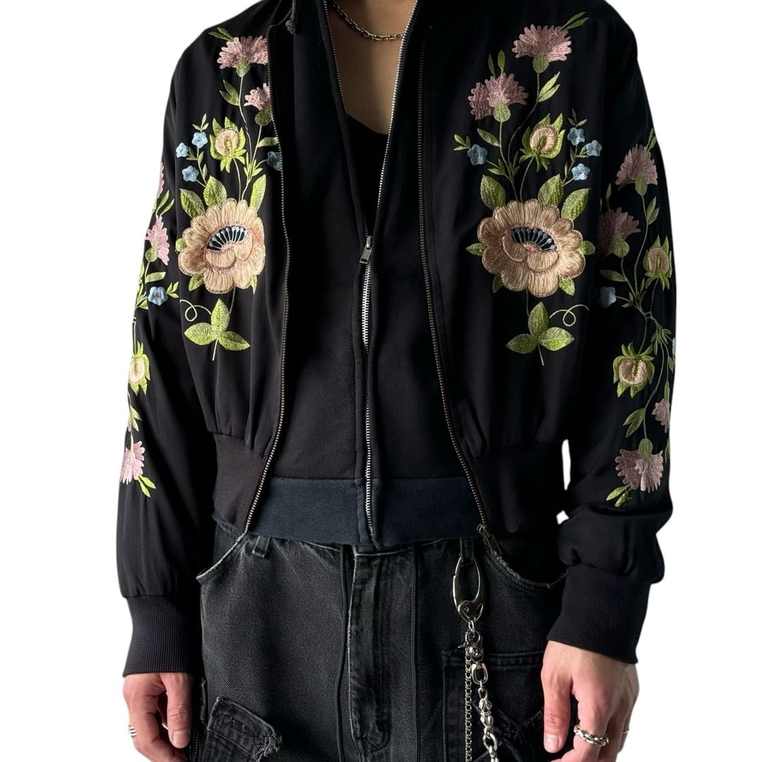 ♾️GLAMOROUS♾ big flower motif embroidery design short length blouson