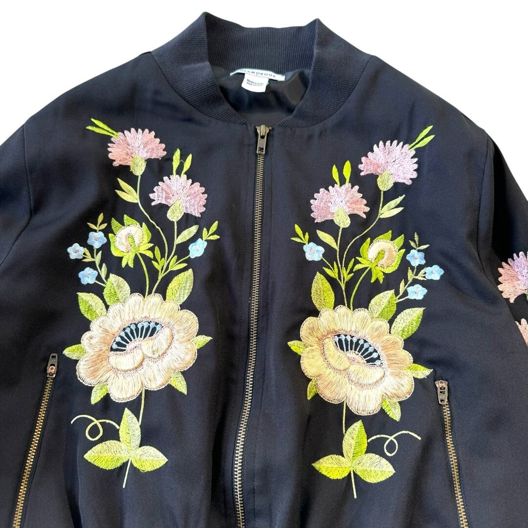 フロントと両袖に豪華で優美なフラワーモチーフの刺繍が映えるデザインブルゾンの入荷✨️