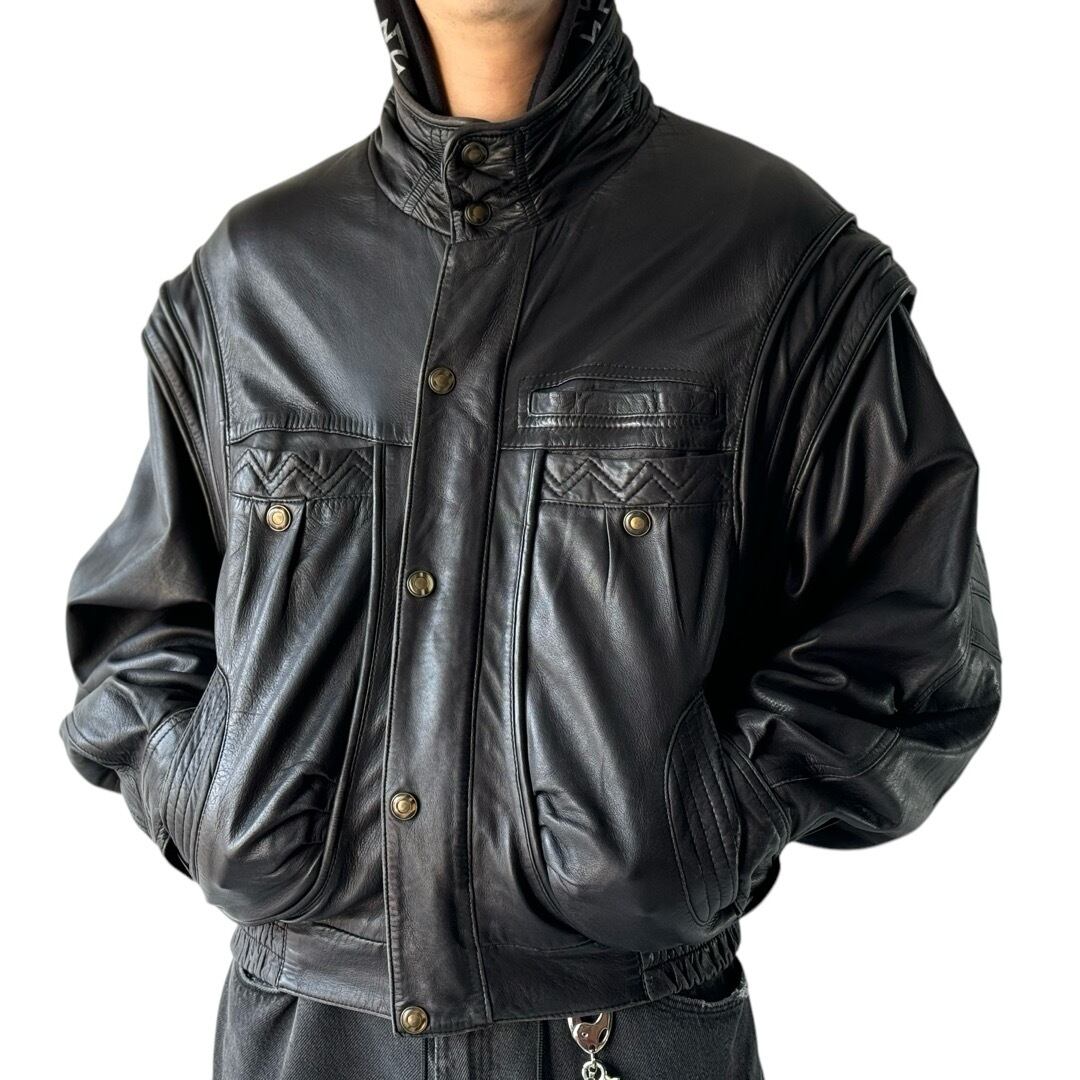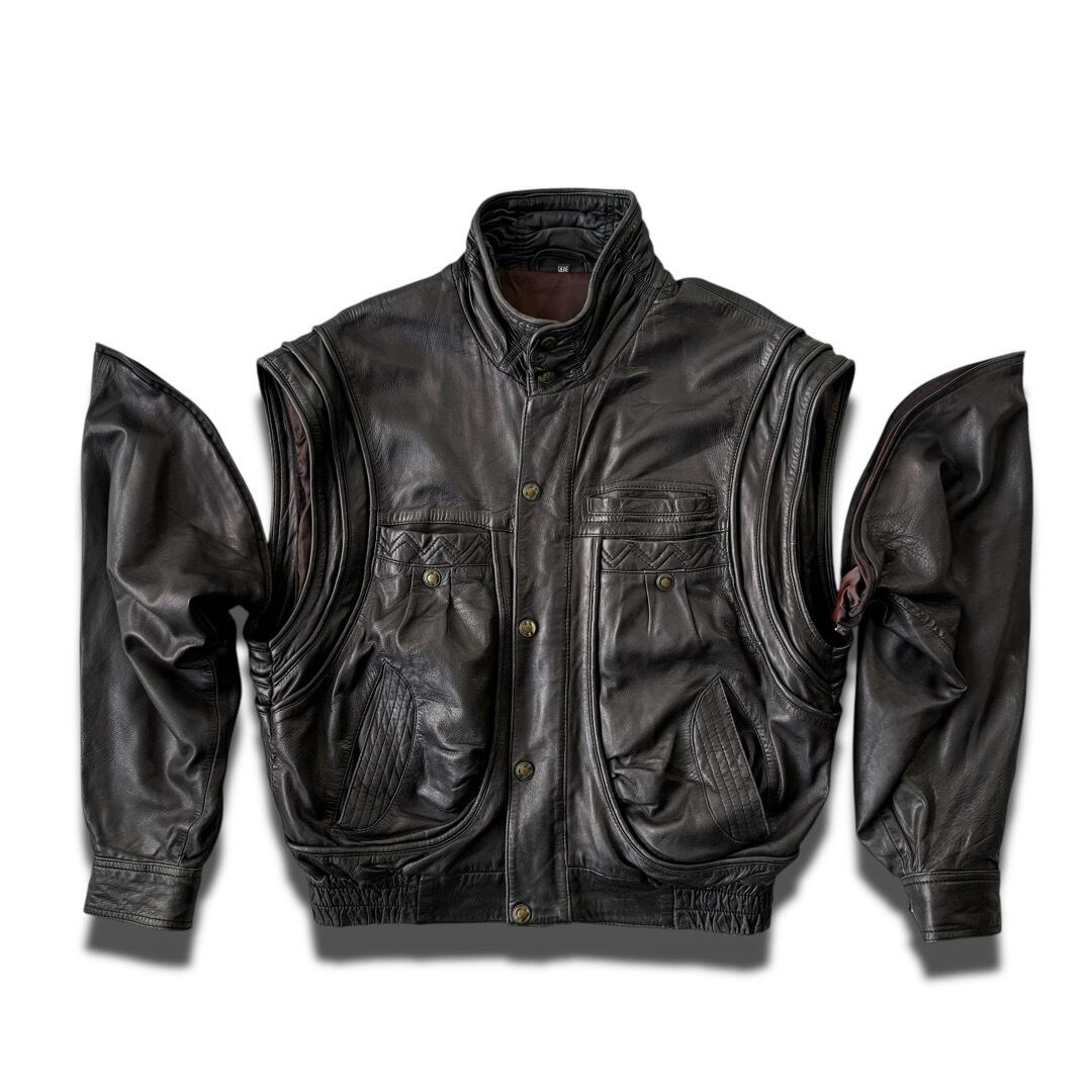 ♾️euro vintage♾️ remove sleeves design leather jacket