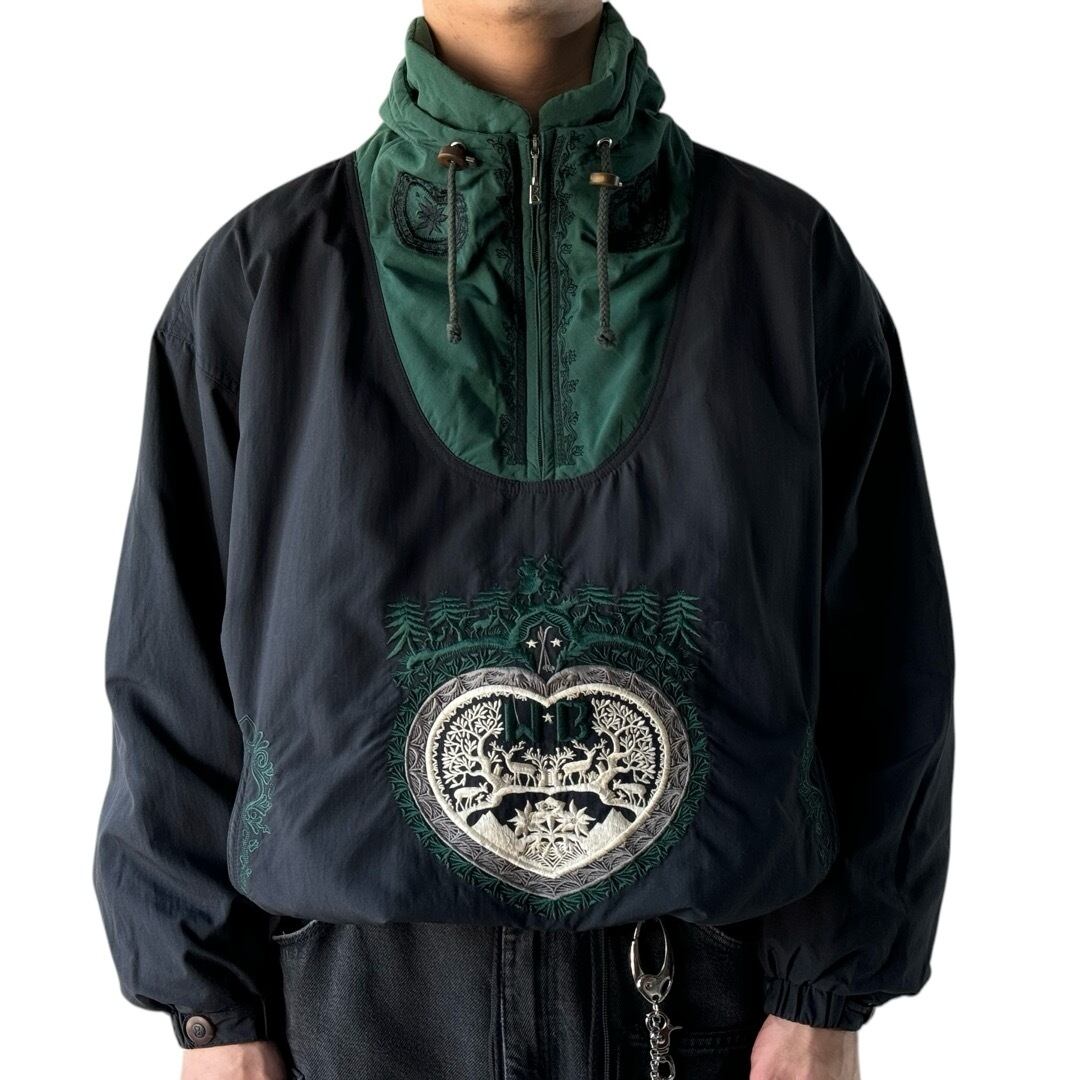 ブラックとグリーンのツートンが目を惹くデザインハーフジッププルオーバー✨✨