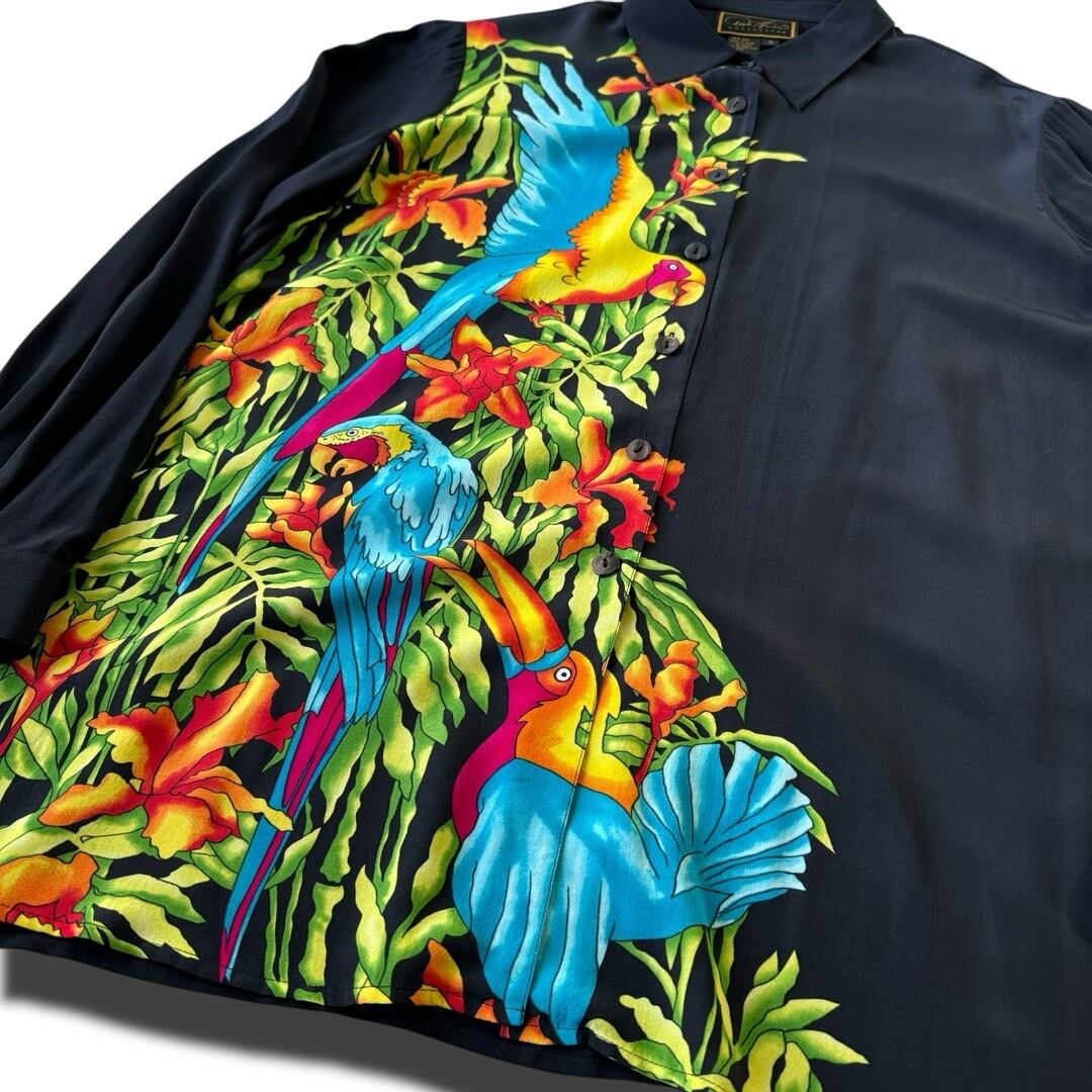 parrot pattern silk shirt
