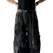 reconstruction custom mega wide black denim pants