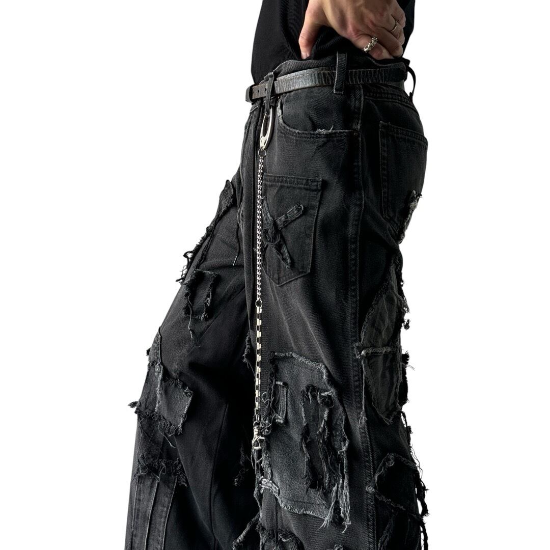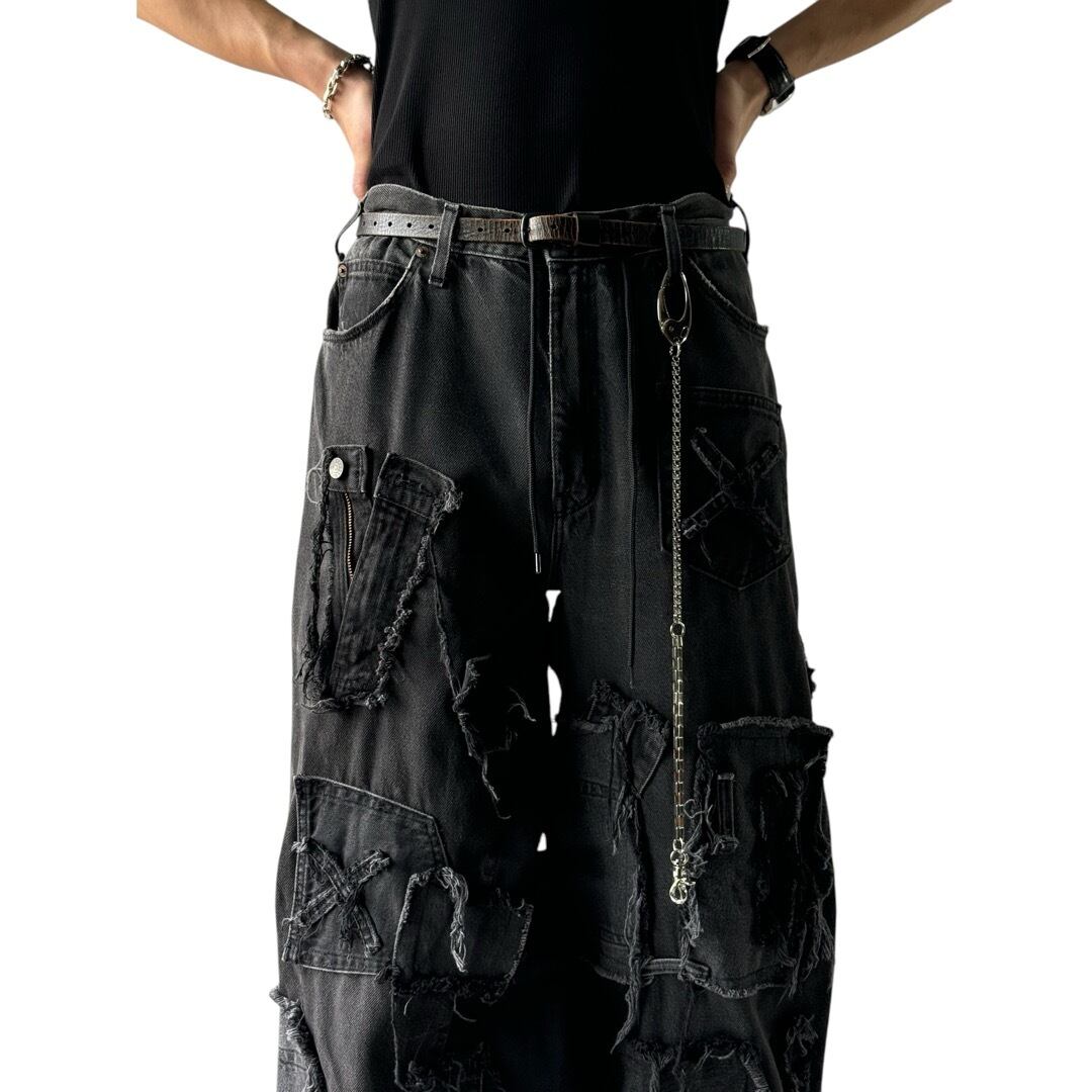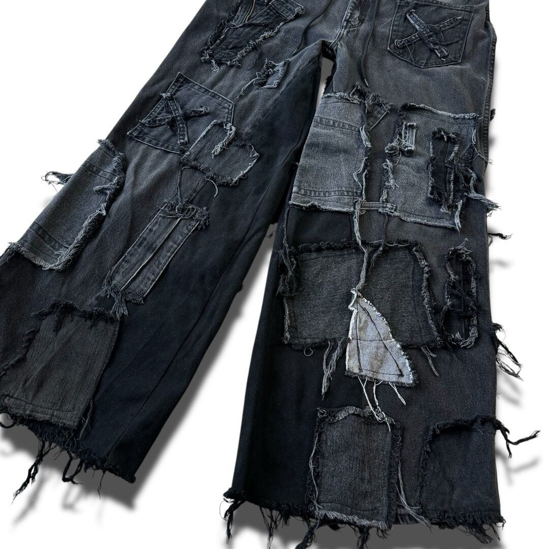 ♾REMAKE DESIGN USED♾ reconstruction custom mega wide black denim pants