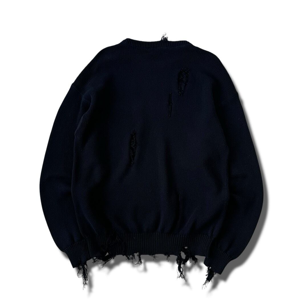 シンプルなデザインにハードめなダメージ加工を施したデザインニット❗️