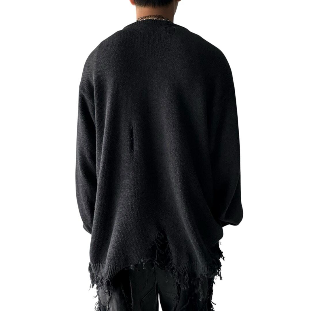 シンプルなデザインにハードめなダメージ加工を施したデザインニット❗️