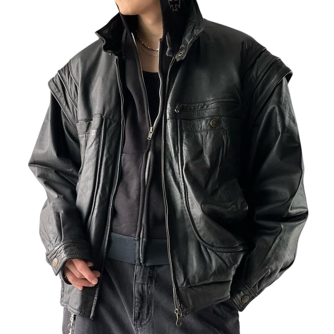 なんと両袖がジップ回して取り外せる奇跡のデザイン!!!! ヨーロッパならではな遊びの効いた短丈レザージャケットです!!!