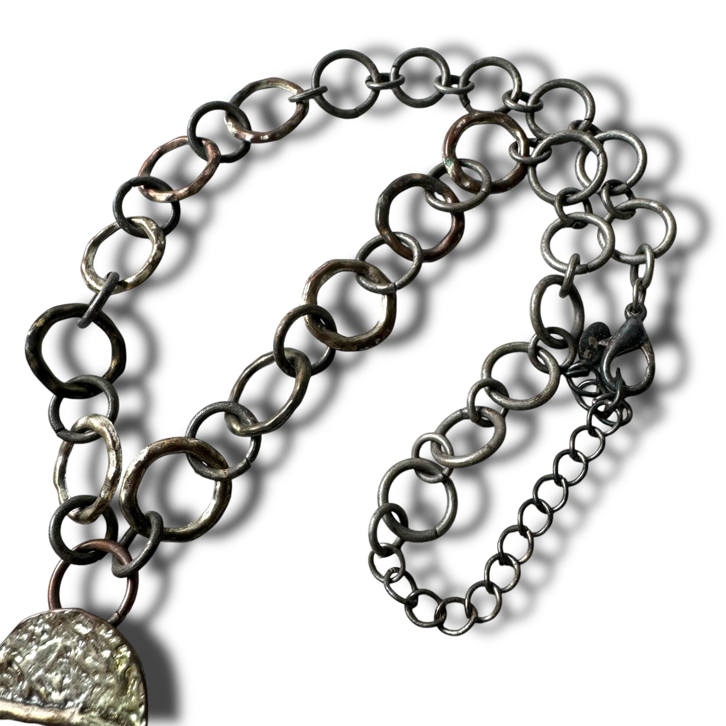 アンティーク調なメタルカラーに歪でボコボコとした質感が面白いチェーンのリンクもまた非常に魅力的✨️