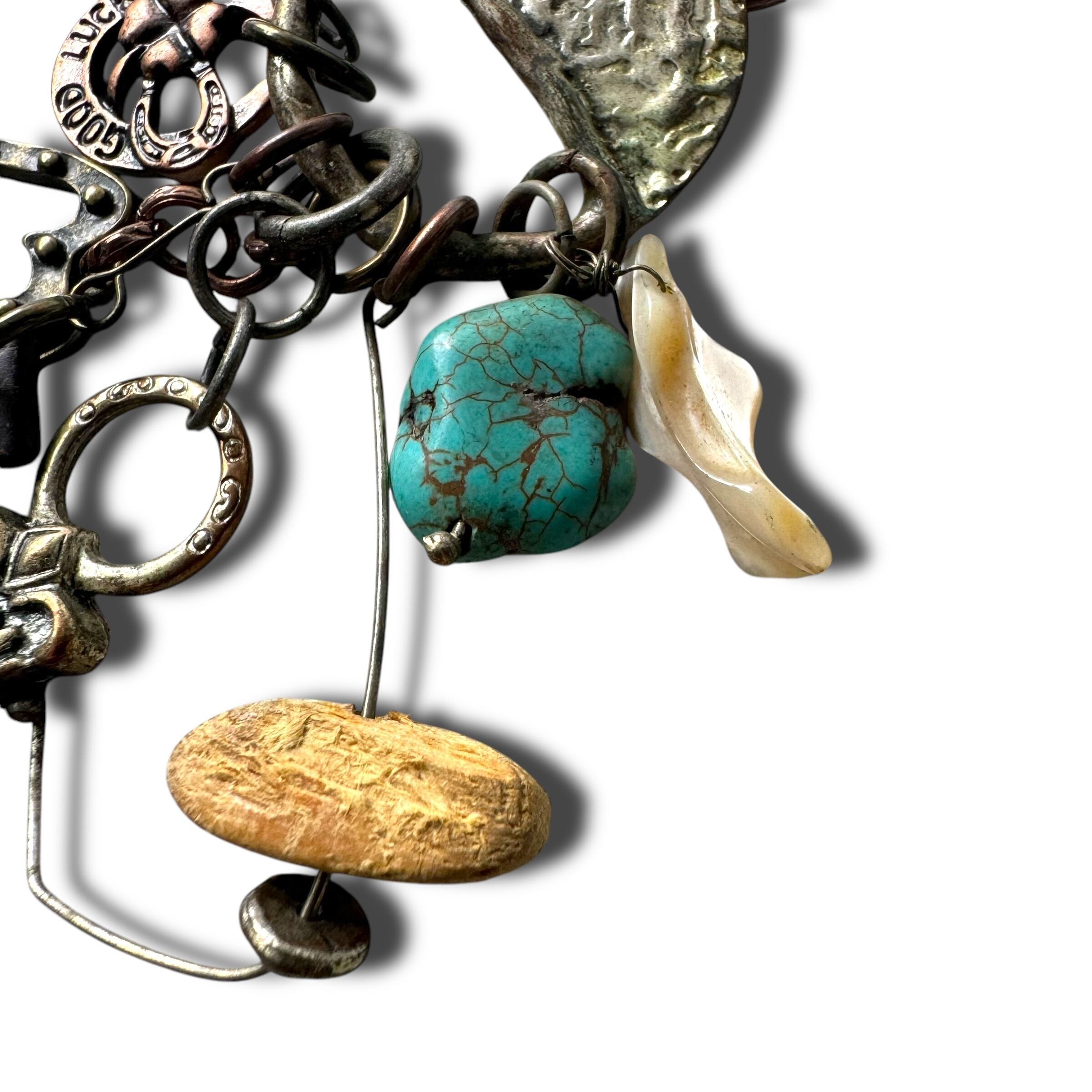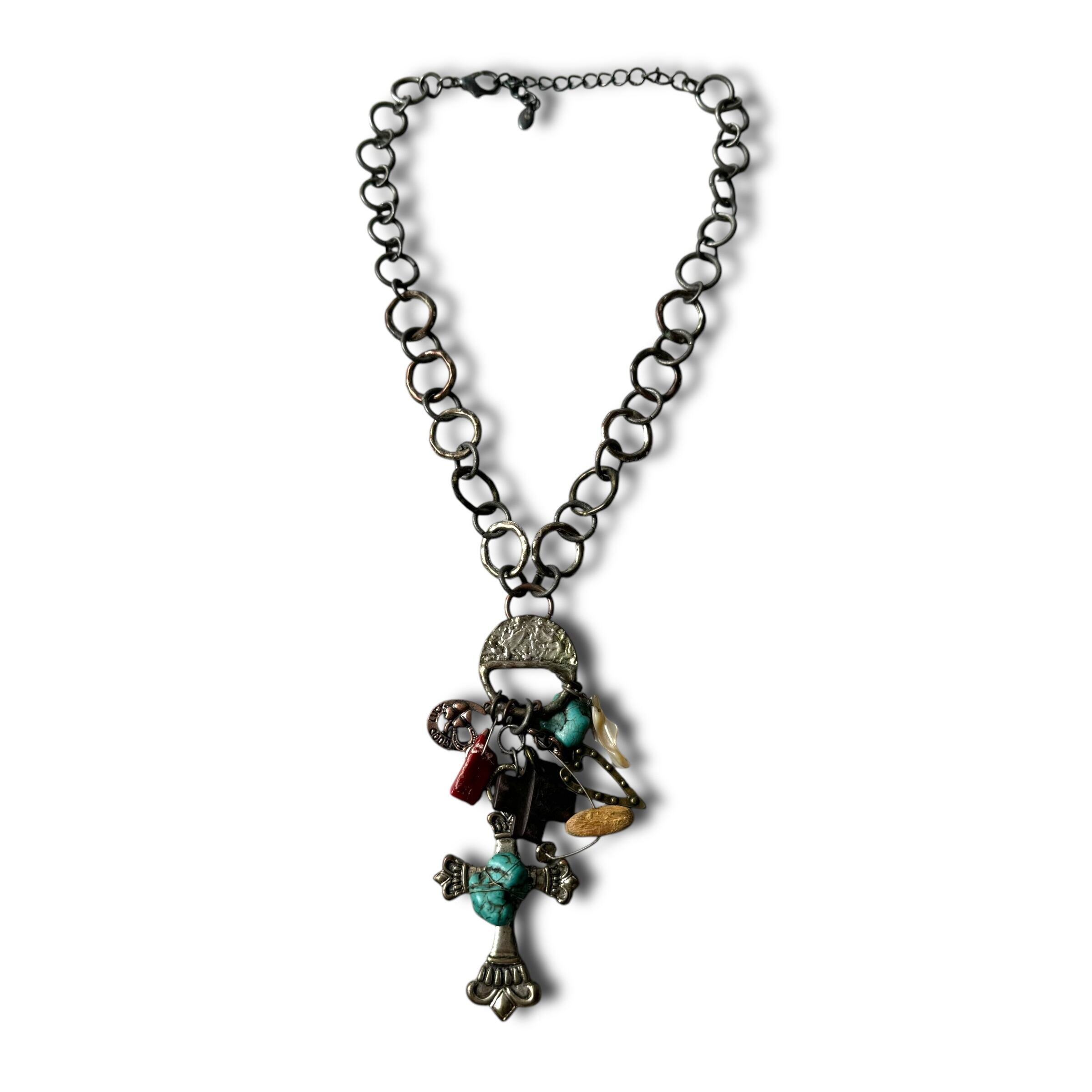存在感抜群なビッグクロスモチーフにストーンだったりウッドをMIXさせた超個性派なデザインが映えるワイドリンクネックレス✨️