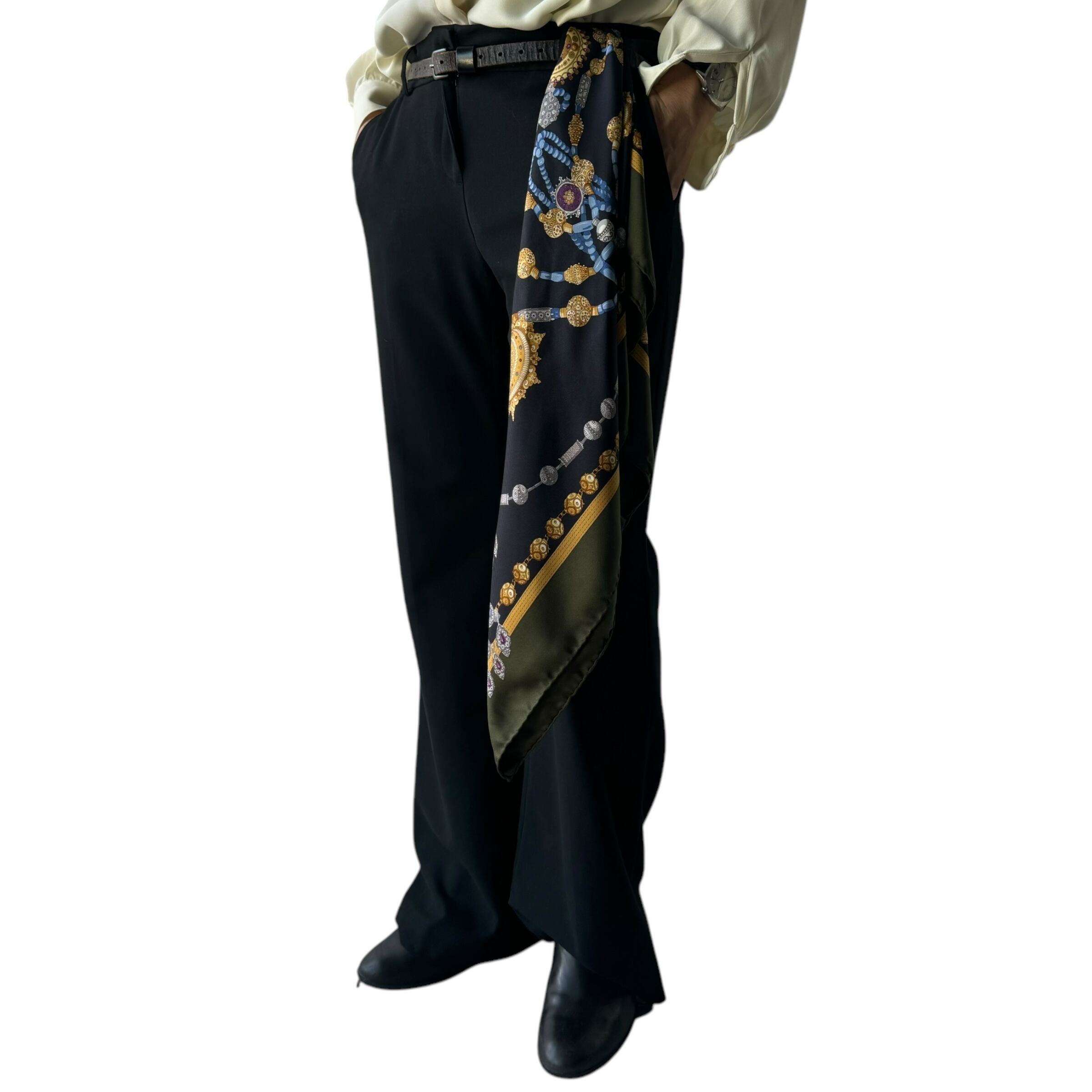 ブランドらしい上品なパターンをのせた高級感溢れる配色にシルクの上質な肌あたりが抜群の大判スカーフ✨️