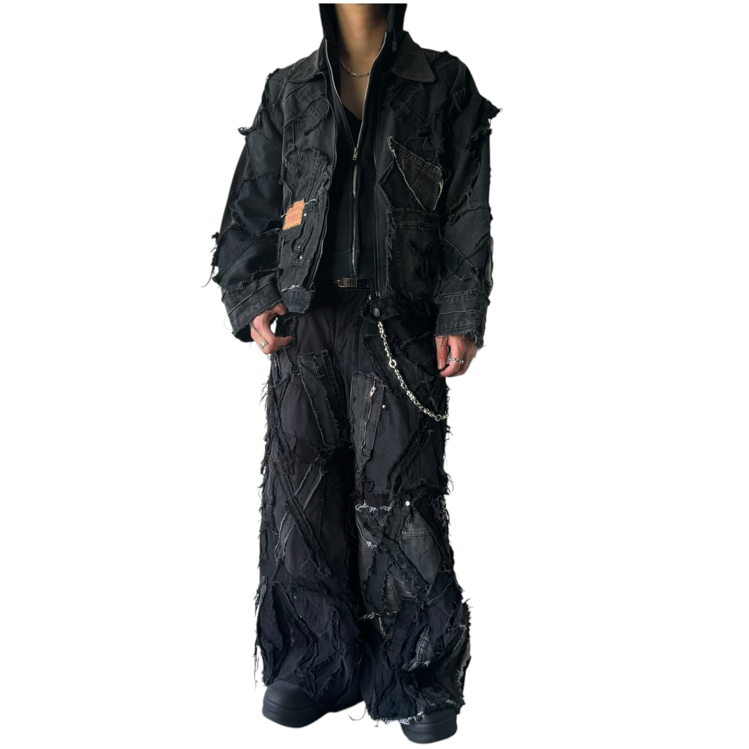 ♾REMAKE DESIGN USED♾ reconstruction custom black denim jacket