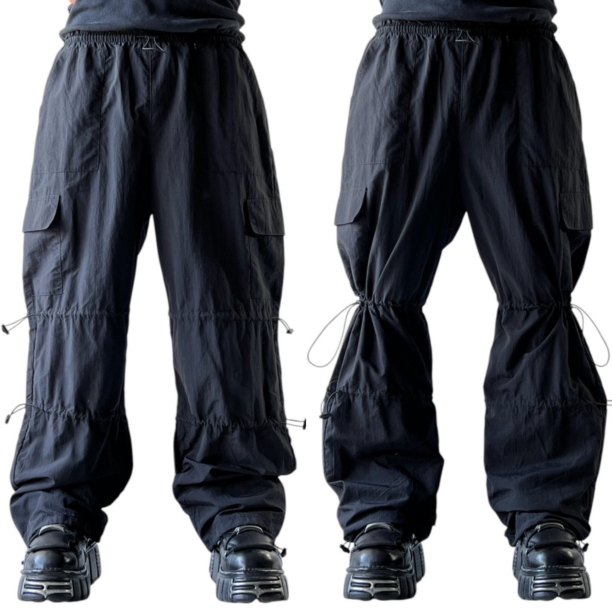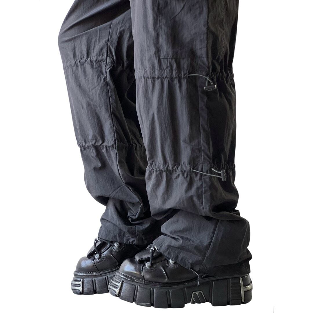 オールブラックでWポケットのカーゴディテールにドローコードデザインが特徴的なナイロンオシャレテックパンツ!!