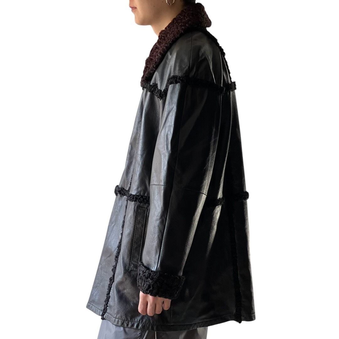 ボア風なラインが魅力的なレザージャケット‼️