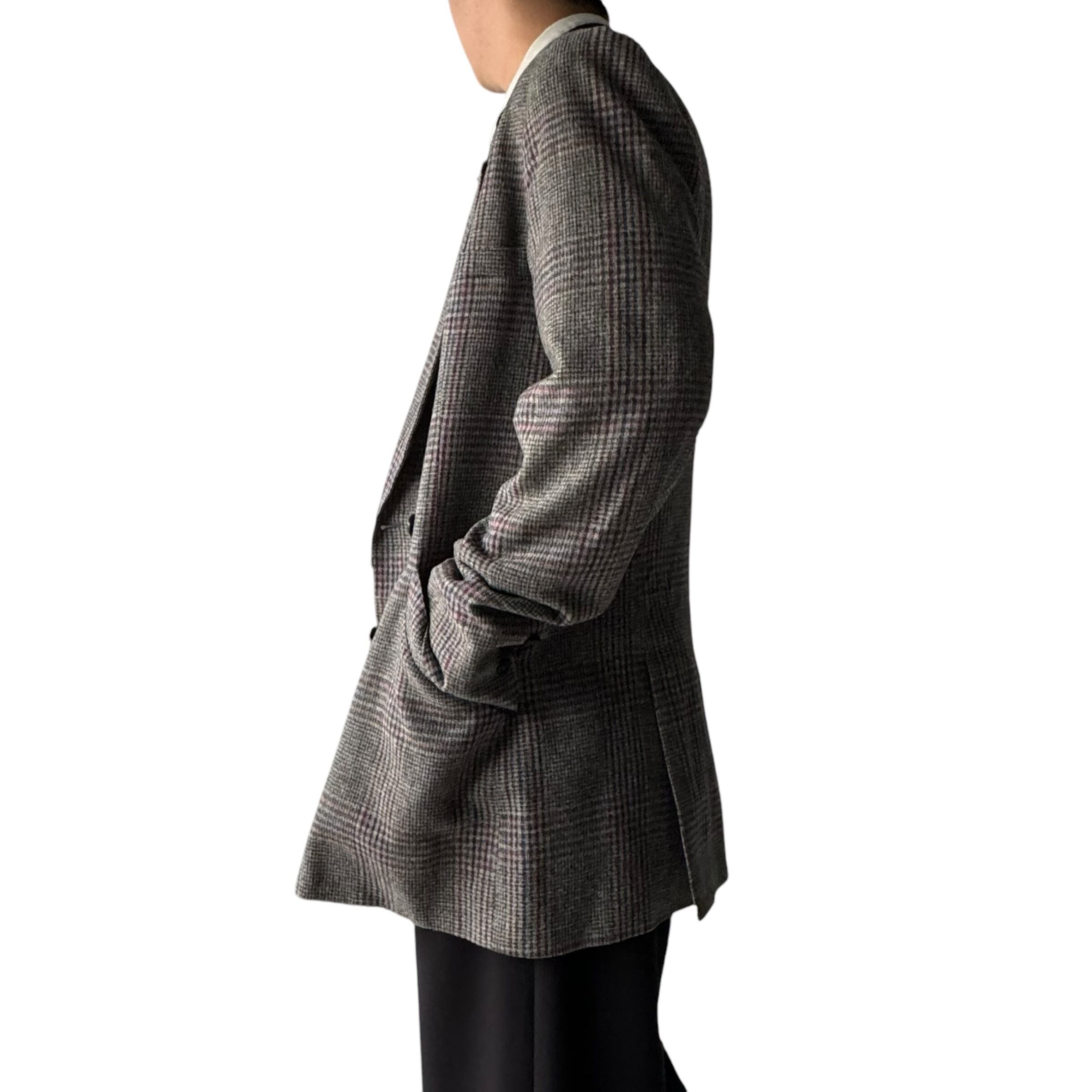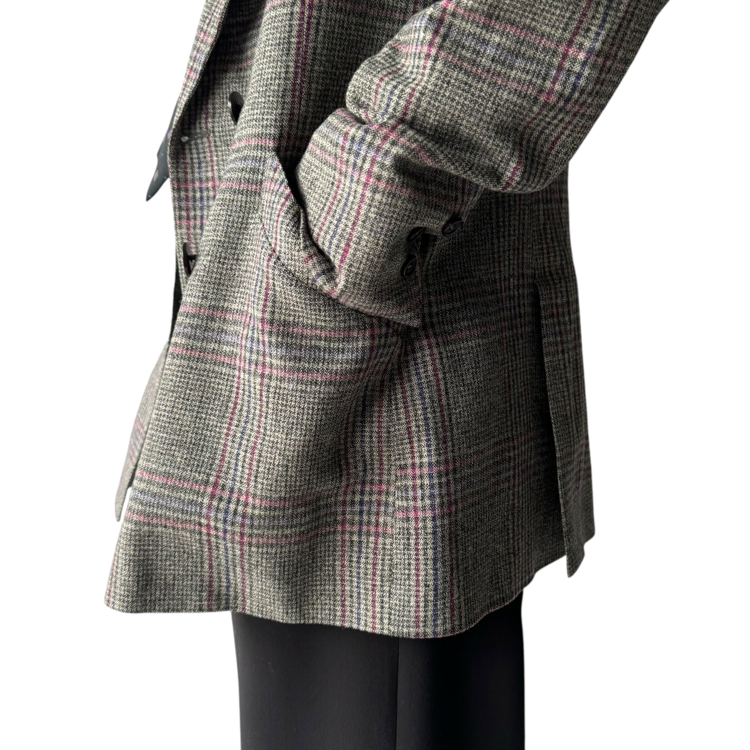 グレーに赤のラインが入るチェックのパターンが美しいデザインテーラードジャケット❗️
