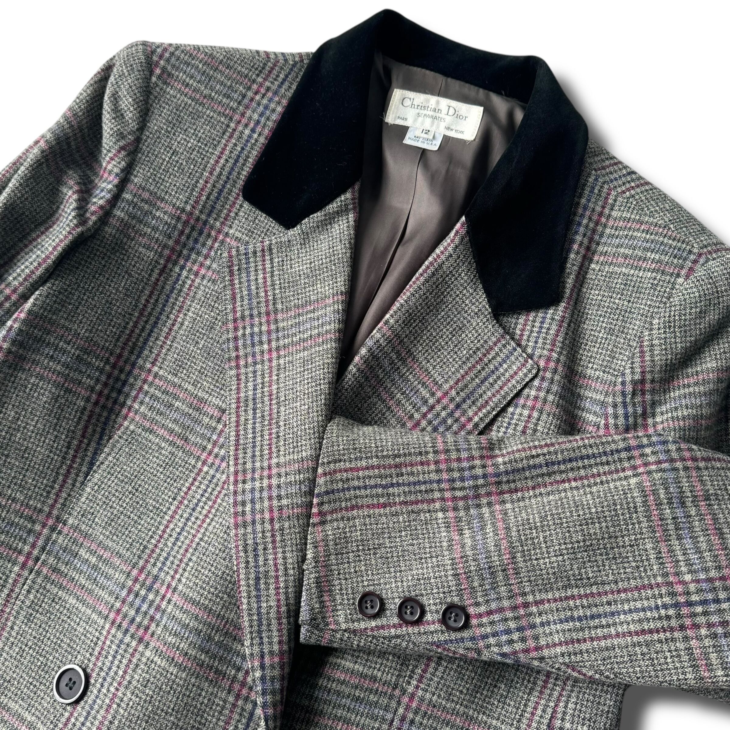 ♾️ChristianDior♾️ velours collar check double breasted jacket MADE IN U.S.A