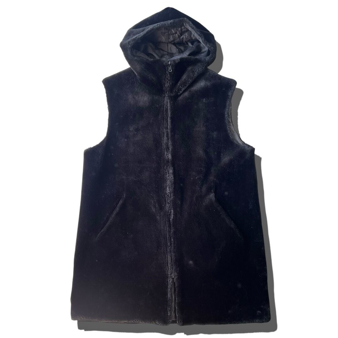【Euro vintage】Reversible pattern Hooded Faux Fur Vest